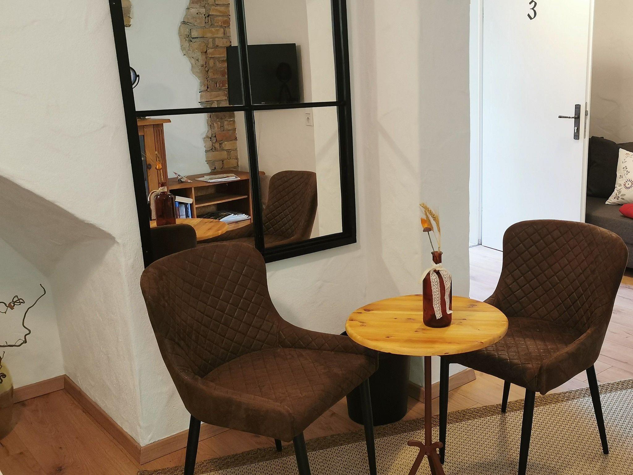 Mit viel Herz und Liebe haben wir unser Café und Gästehaus eingerichtet und schaffen für Sie eine gemütliche Wohnzimmerathmosphäre. Auch unsere Terrasse lädt zum Verweilen, Träumen und Kraft tanken ein. Genießen Sie die ruhige Lage, inmitten der Natur, umgeben von den Resten historischer Gemäuer und im Hintergrund das Läuten der Kirchenglocken.