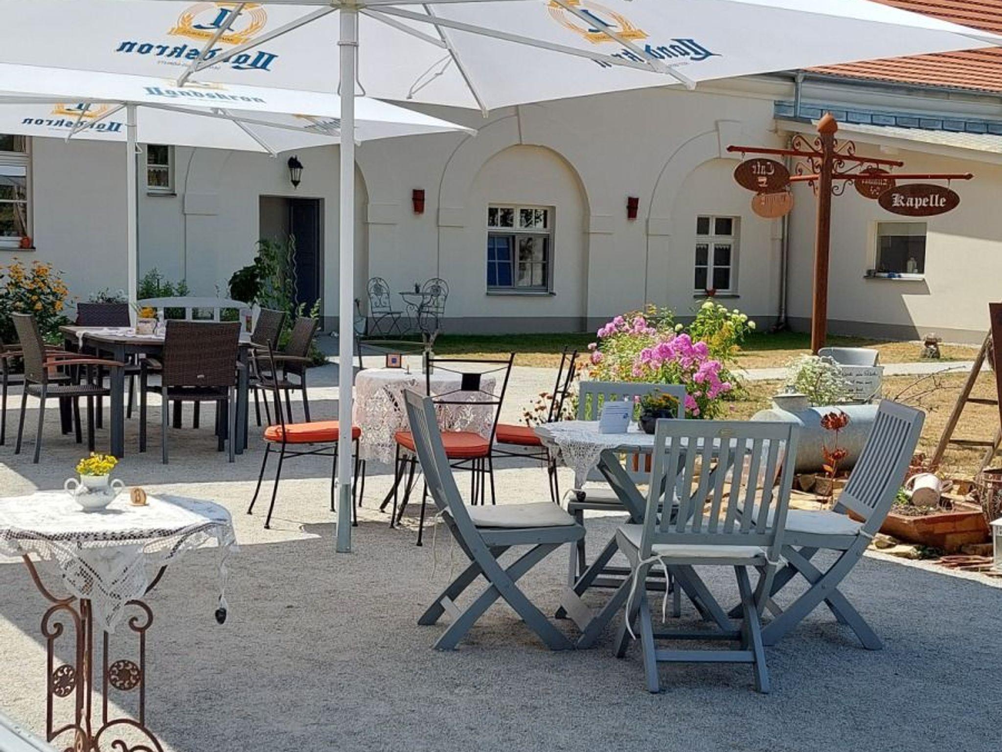 Mit viel Herz und Liebe haben wir unser Café und Gästehaus eingerichtet und schaffen für Sie eine gemütliche Wohnzimmerathmosphäre. Auch unsere Terrasse lädt zum Verweilen, Träumen und Kraft tanken ein. Genießen Sie die ruhige Lage, inmitten der Natur, umgeben von den Resten historischer Gemäuer und im Hintergrund das Läuten der Kirchenglocken.