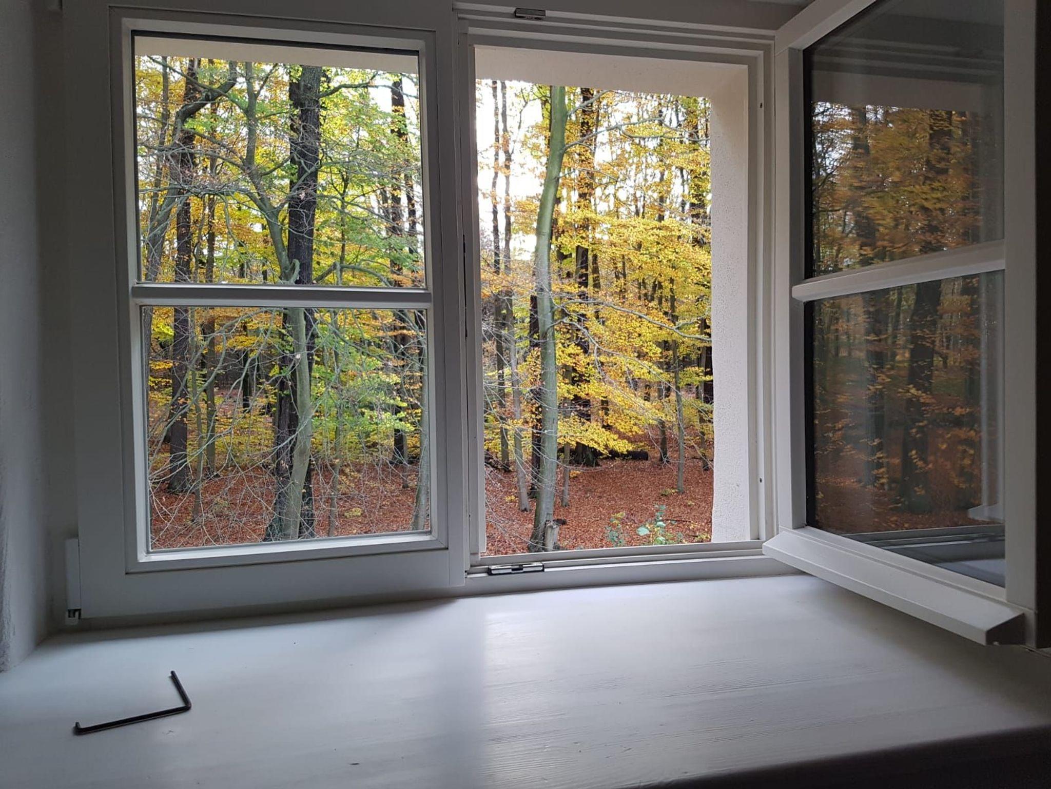 Sie schauen aus dem Fenster direkt in den angrenzenden Buchenwald oder auf die Schlosskapelle.