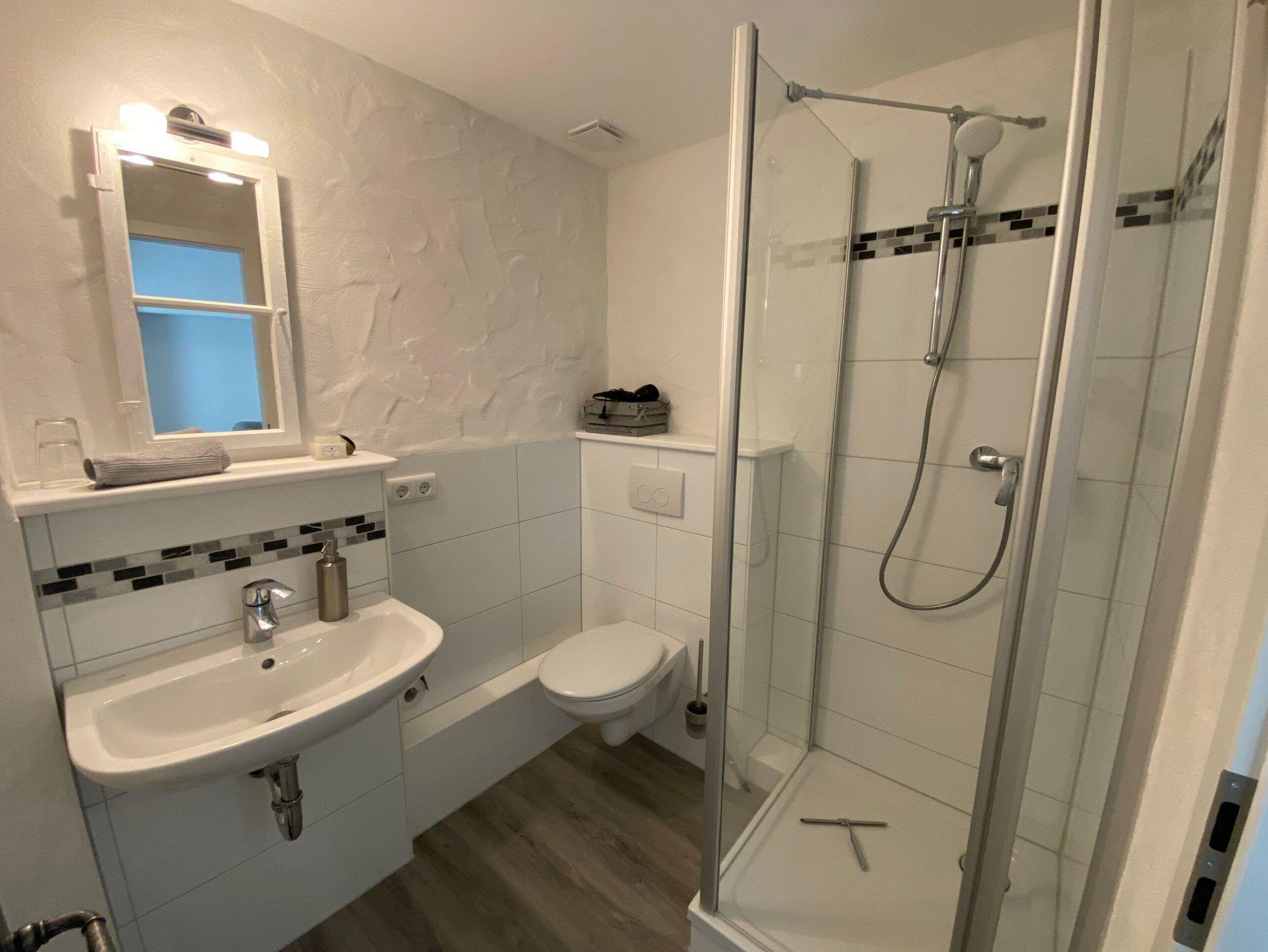 Alle Doppelzimmer haben ein eigenes Badezimmer mit Dusche, Waschbecken und Toilette. Folgende Ausstattung ist in jedem Gästezimmer vorhanden: