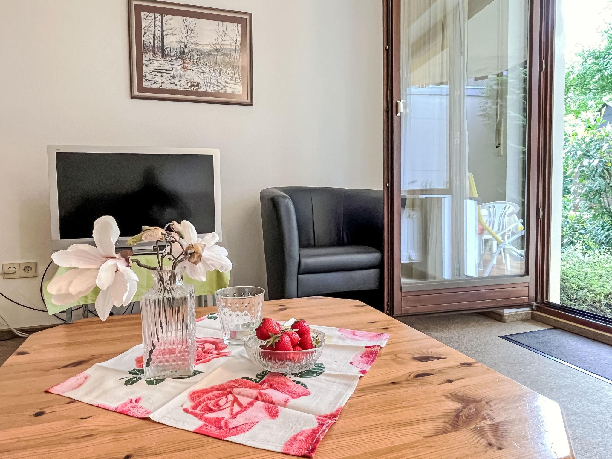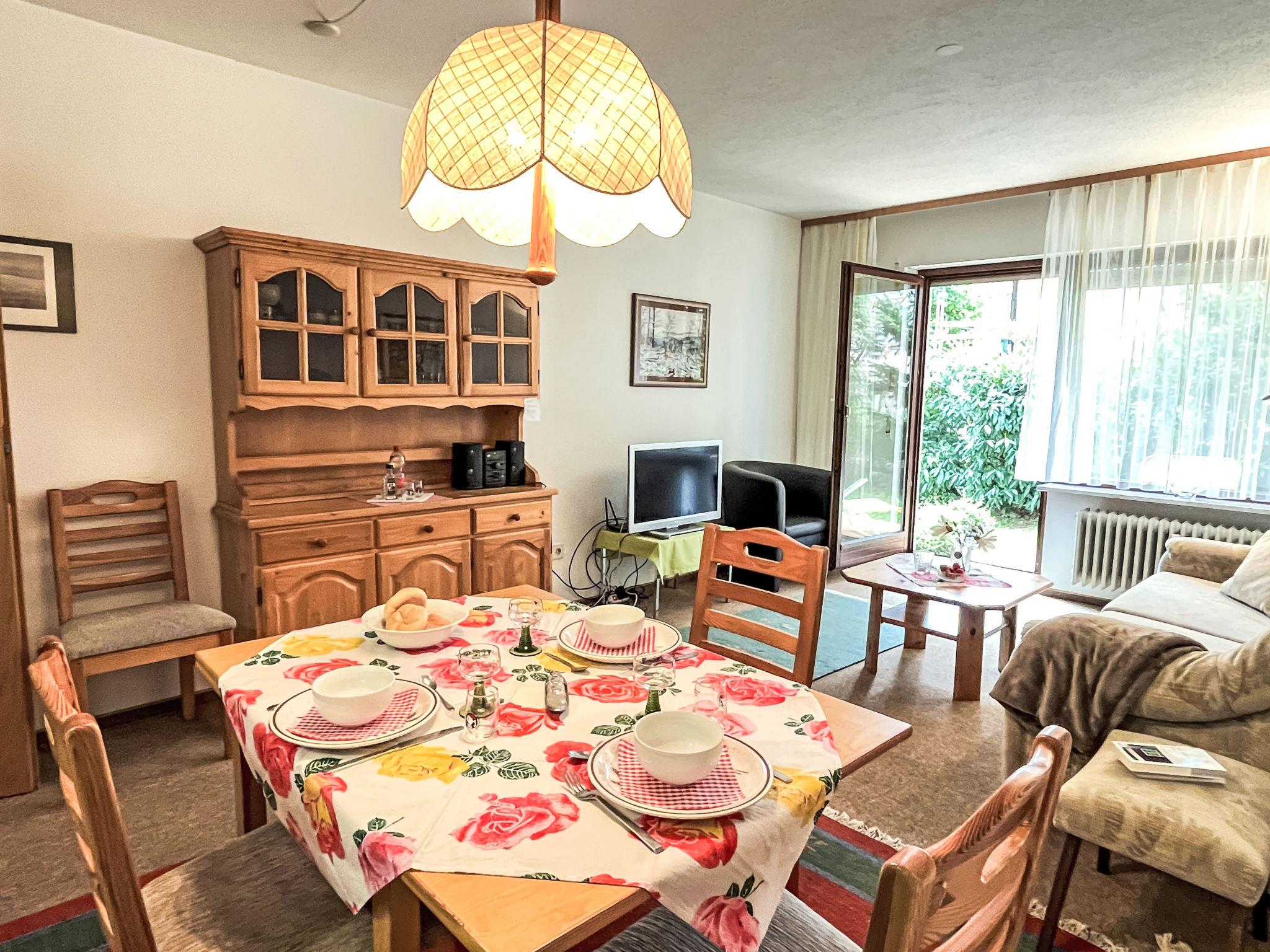 "Sonnenmatt App. 12", 2-room apartment 50 m2, on the lower ground floor. Simple and practical furnishings: living/dining room with 1 sofabed and cable TV (flat screen), radio and CD-player. 1 double bedroom with 1 double bed. Kitchenette (oven, 4 ceramic glass hob hotplates, toaster, kettle, electric coffee machine). Bath/WC. Heating. Terrace roofed. Terrace furniture, box-room. Facilities: telephone, hair dryer. Internet (WiFi, free). Parking (1 car) at the house. Please note: non-smokers only. Smoke alarm.