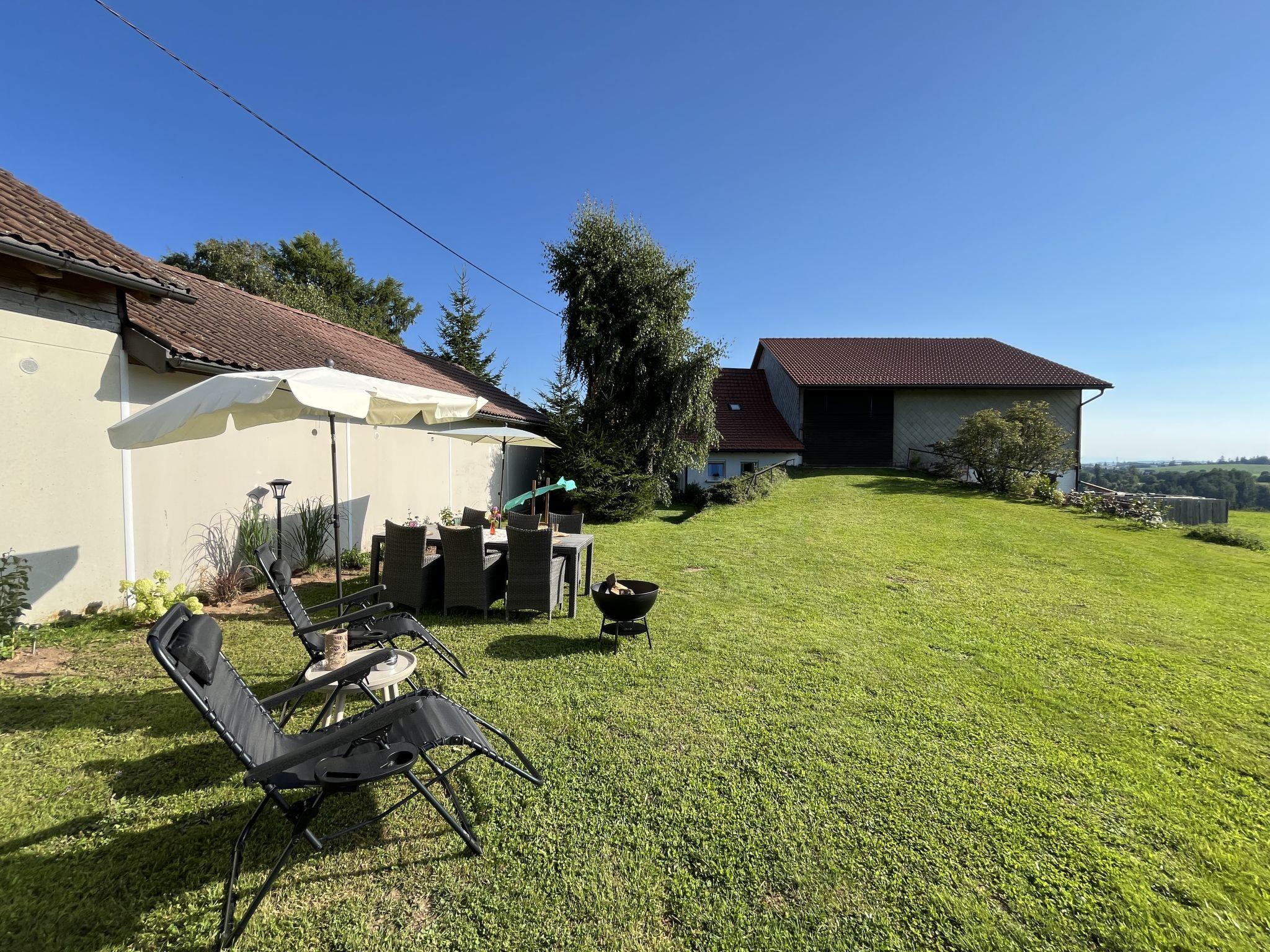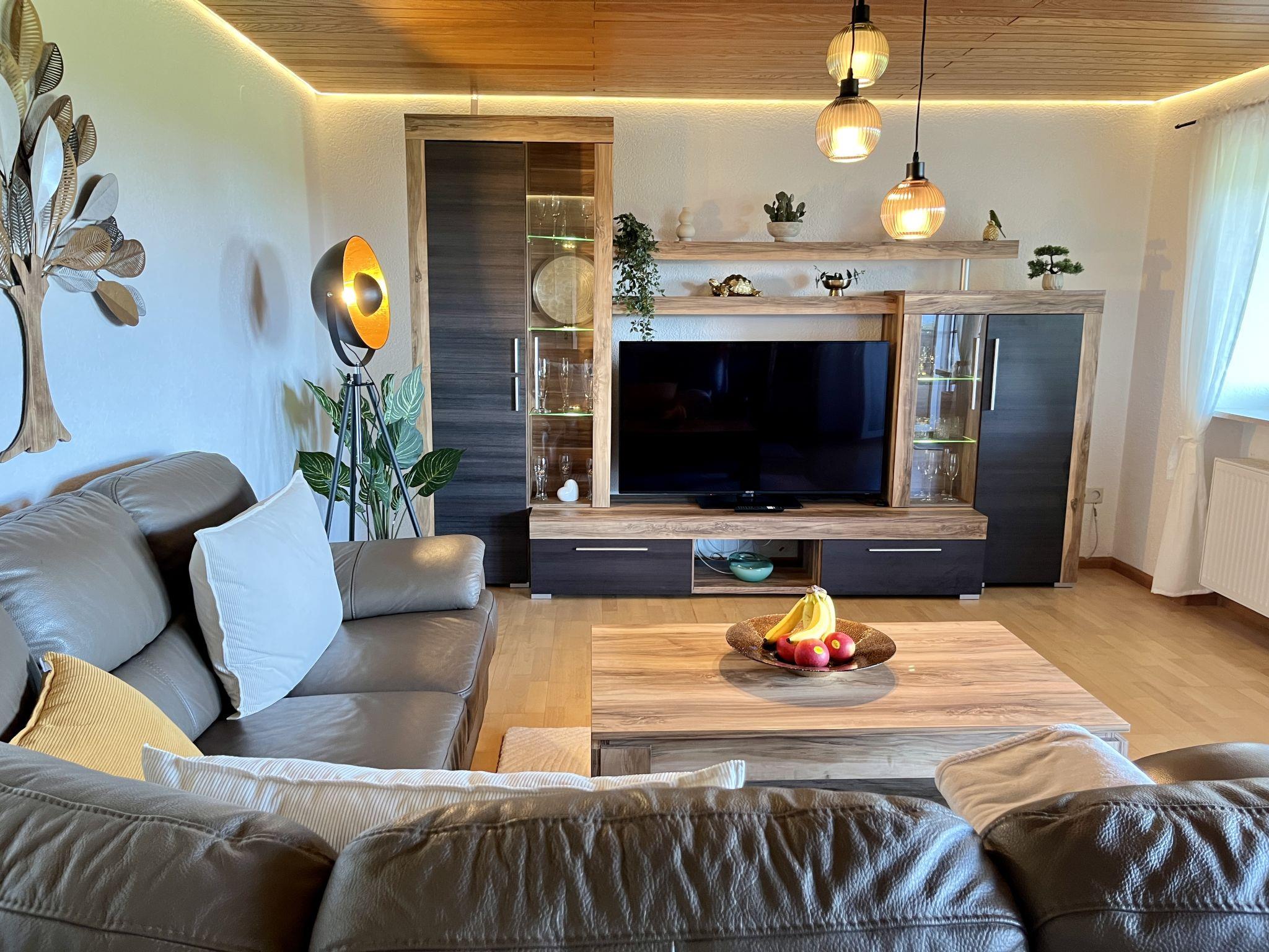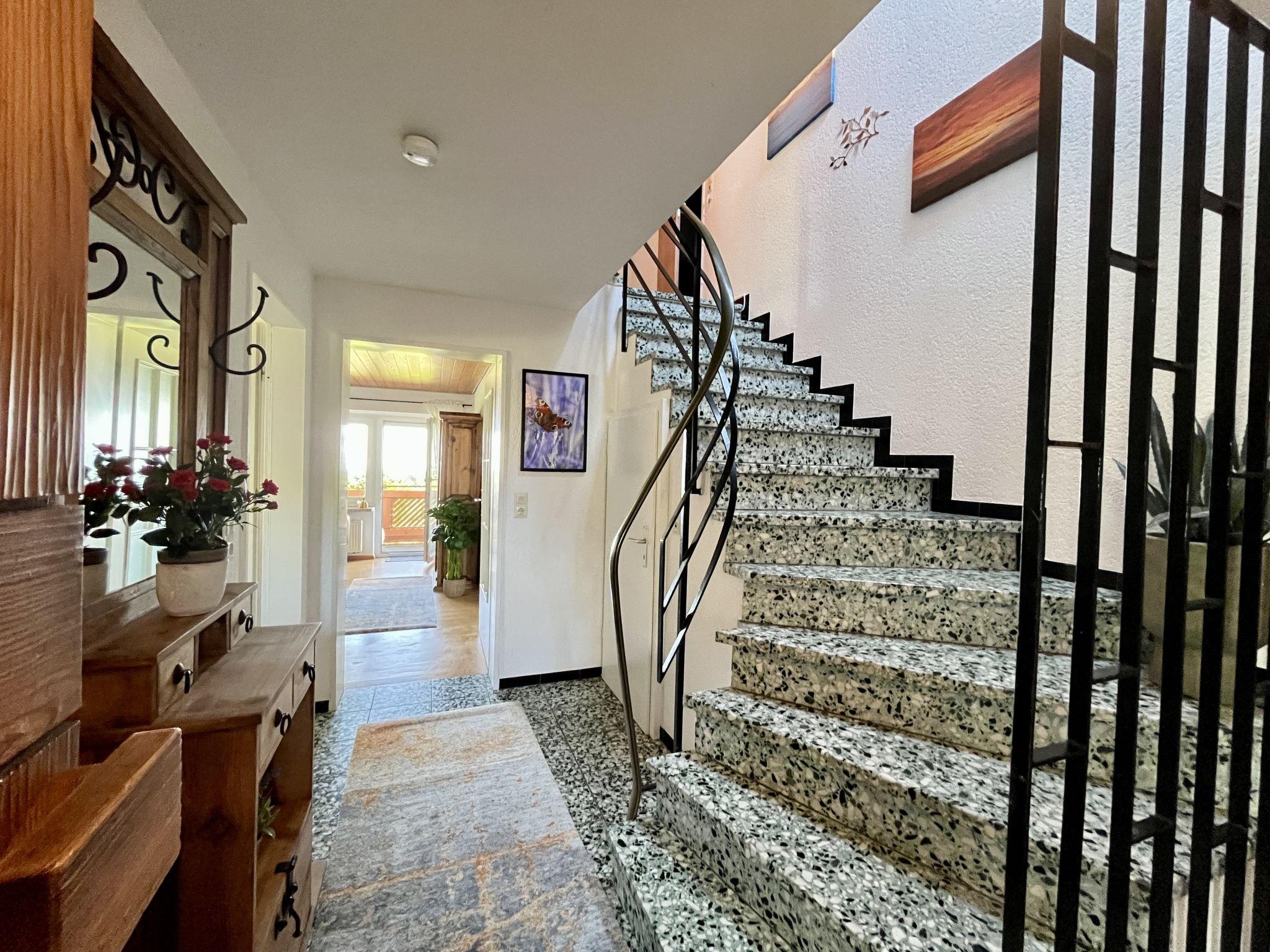 "Gustis Hüsli - Alpensicht & Natur pur", 4-room house 112 m2 on 2 levels. Spacious, partly renovated in 2024, cosy furnishings: entrance hall. Living room with satellite TV (flat screen). Exit to the garden, to the balcony. 1 room with 1 double bed (2 x 90 cm, length 200 cm), satellite TV (flat screen). Large kitchen-/living room (oven, dishwasher, 4 ceramic glass hob hotplates, toaster, kettle, microwave, electric coffee machine) with dining table. Bath/WC. Upper floor: 1 room with 1 double bed (2 x 90 cm, length 200 cm), satellite TV (flat screen). 1 room with 2 beds (90 cm, length 200 cm). Sep. WC. Heating. Large balcony, large patio, lawn 800 m2. Balcony furniture, barbecue, deck chairs (4). Marvellous panoramic view of Alps. Facilities: washing machine, mosquito net, children's high chair, hair dryer. Internet (WiFi). Parking at the house. Please note: non-smoking house. Maximum 1 pet/ dog allowed. Smoke alarm, fire extinguisher. Both TVs are SMART TVs. When there are less than the maximum number of guests staying at the property, not all of the bedrooms will be available for use.