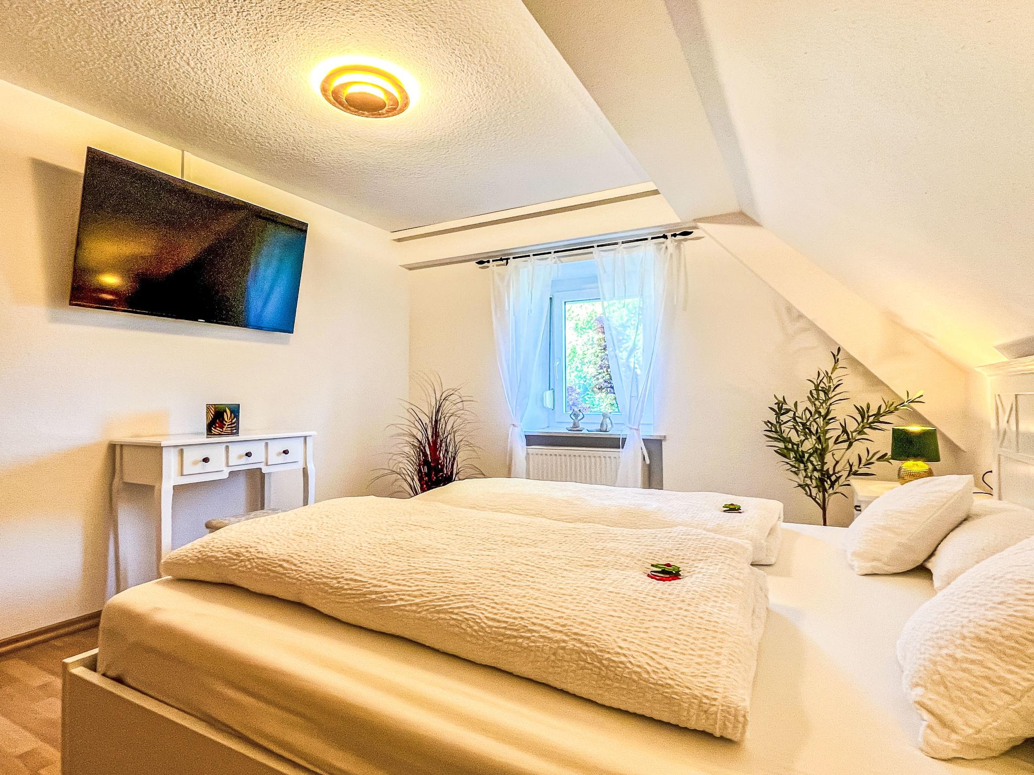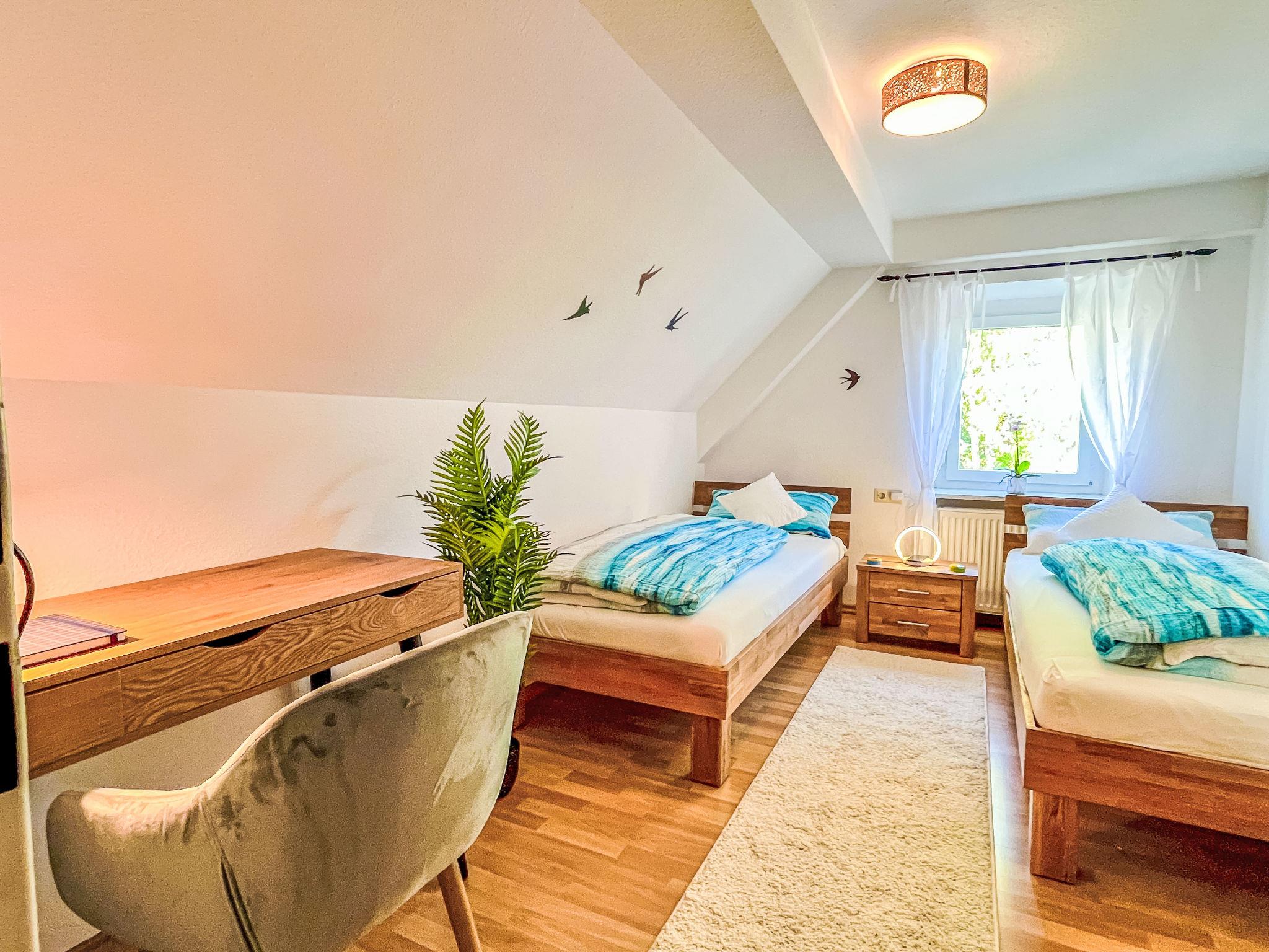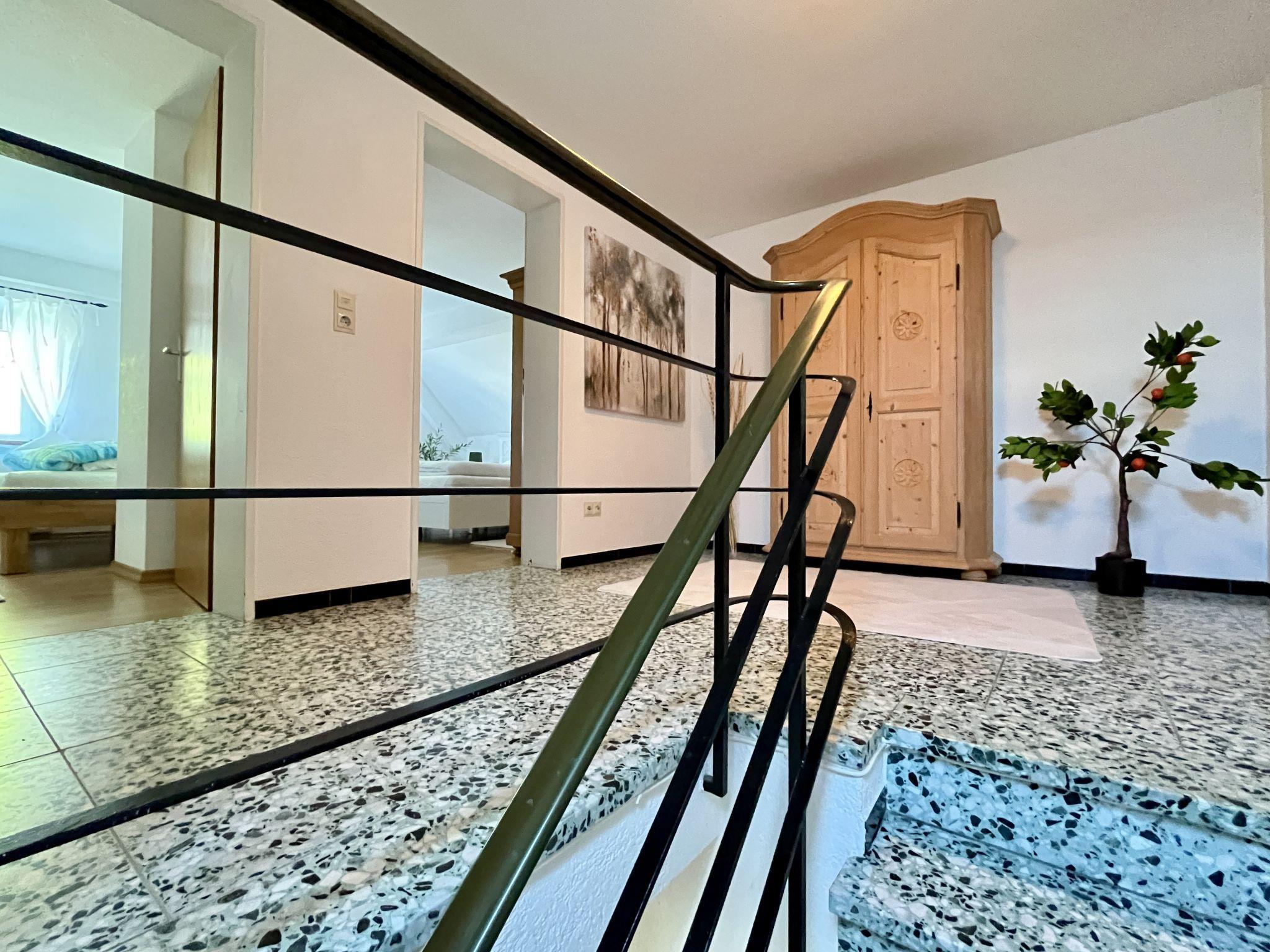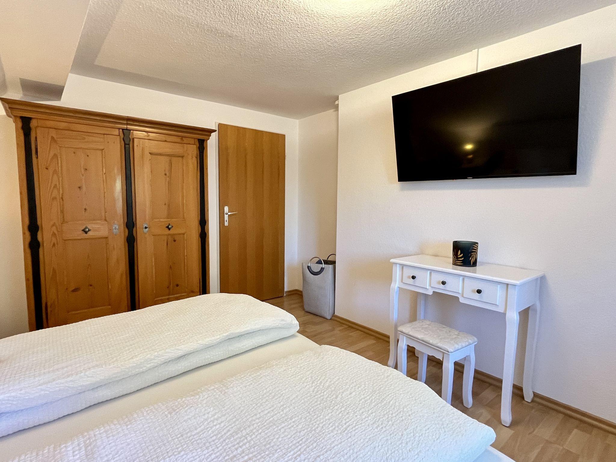"Gustis Hüsli - Alpensicht & Natur pur", 4-room house 112 m2 on 2 levels. Spacious, partly renovated in 2024, cosy furnishings: entrance hall. Living room with satellite TV (flat screen). Exit to the garden, to the balcony. 1 room with 1 double bed (2 x 90 cm, length 200 cm), satellite TV (flat screen). Large kitchen-/living room (oven, dishwasher, 4 ceramic glass hob hotplates, toaster, kettle, microwave, electric coffee machine) with dining table. Bath/WC. Upper floor: 1 room with 1 double bed (2 x 90 cm, length 200 cm), satellite TV (flat screen). 1 room with 2 beds (90 cm, length 200 cm). Sep. WC. Heating. Large balcony, large patio, lawn 800 m2. Balcony furniture, barbecue, deck chairs (4). Marvellous panoramic view of Alps. Facilities: washing machine, mosquito net, children's high chair, hair dryer. Internet (WiFi). Parking at the house. Please note: non-smoking house. Maximum 1 pet/ dog allowed. Smoke alarm, fire extinguisher. Both TVs are SMART TVs. When there are less than the maximum number of guests staying at the property, not all of the bedrooms will be available for use.