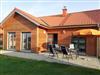 Auf der Terrasse des Ferienhauses mit Gartenmöbeln, Sonnenschirm und Grill kann man nach wunderbar entspannen.
