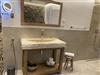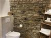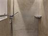 Badezimmer WC, Walk-in-Dusche mit Regendusche, Hand- und Duschtücher, Kosmetikspiegel, Fön