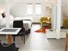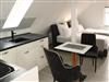 AUSSTATTUNG DER FERIENWOHNUNG ROSE Wohn- & Schlafbereich bequeme Loungesessel, Designer-TV , Schreibtisch, Doppelbett , Kleiderschrank, Garderobe