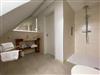 Badezimmer WC, Regendusche, beleuchteter Spiegel, Handtuchheizkörper, Hand- und Duschtücher, Kosmetikspiegel, Fön