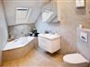 Im neuen Bad befindet sich eine komfortable Dusch-Badewanne, ein Waschbecken und WC. Außerdem: ein großer Spiegelschrank, ein Kosmetik-Spiegel, Föhn, Handtücher und Vorleger. Das Bad kann mit Tageslichtfenster gut belüftet werden und ist lichtdurchflutet und einladend.