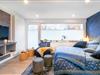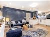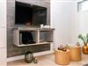 Gegenüber des kuscheligen, großzügigen und sehr hochwertigen Schlafsofas von Bo Concept befindet sich die Cine-Wall mit Flachbild-TV.