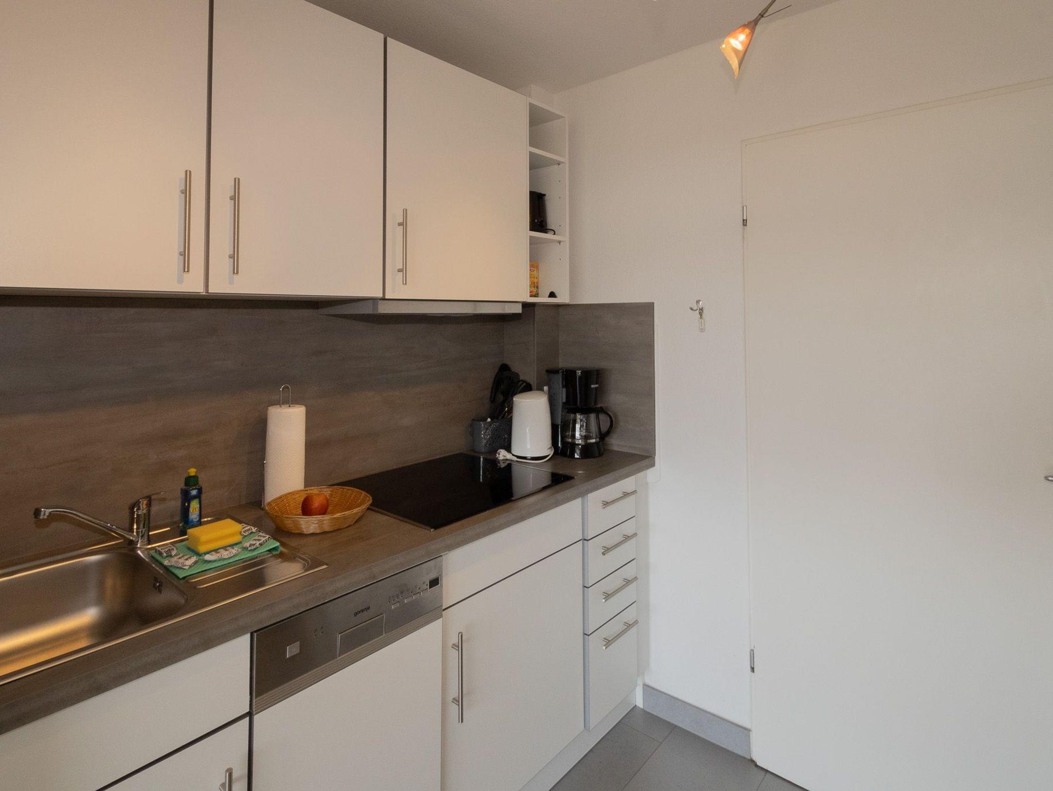 Die voll ausgestattete Küche lässt keine Wünsche offen. Egal, ob Sie Ihre eigenen Gerichte zaubern oder einfach nur ein schnelles Frühstück zubereiten wollen: Mit Herd, Kühlschrank, Spülmaschine, Mikrowelle, Kaffeemaschine, Toaster sowie sämtlichen Küchenutensilien ist für alles gesorgt. Der Essbereich mit einem praktischen Esstisch bietet den perfekten Platz für gemütliche Mahlzeiten.