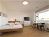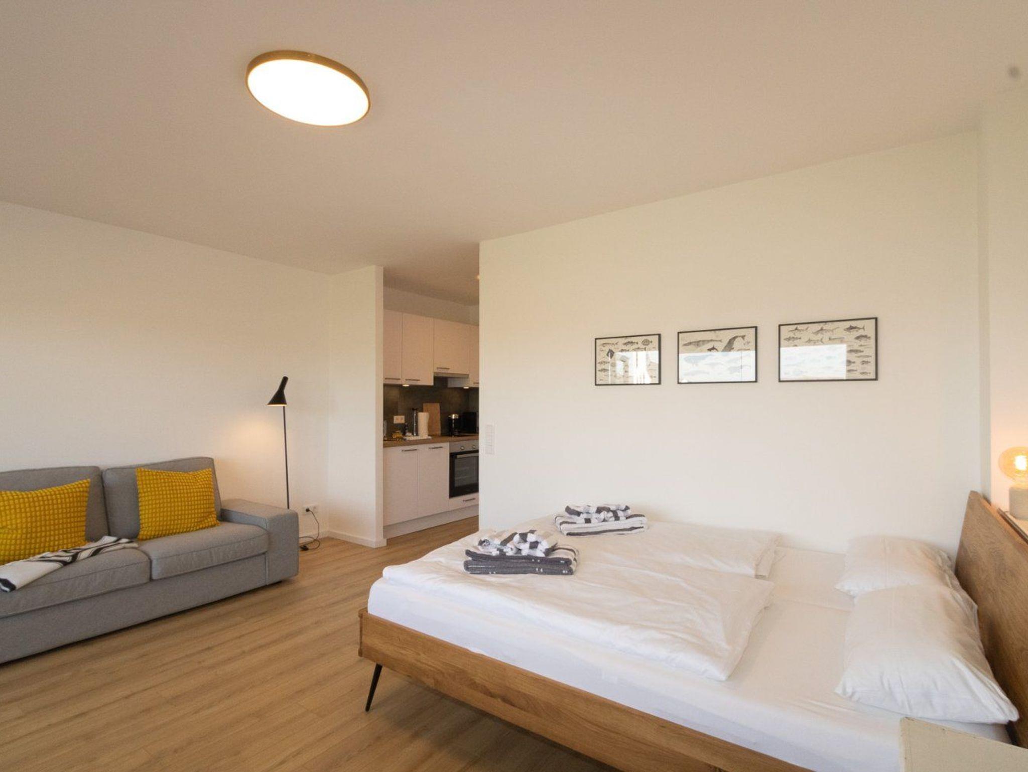 Die neue Küchenzeile wurde modern gehalten und ist mit sehr viel Liebe zum Detail ausgestattet. Im Wohnbereich kann gemütlich Abends von der bequemen Couch gechillt werden. Vom großzügigen Wohn-/Schlafraum gelangen Sie auf den geräumigen Balkon, von dem Sie gen Osten den Sonnenaufgang genießen können. Der Strand, Hafen und auch die Einkaufsmöglichkeiten sind gut zu Fuß in wenigen Minuten zu erreichen.
