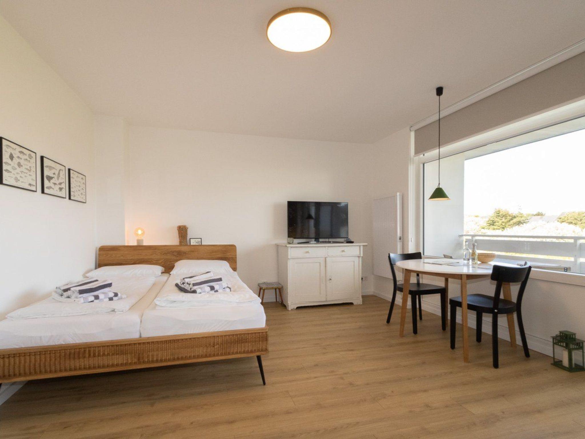 Mit viel Liebe wurde diese Ferienwohnung gerade neu renoviert und ist für 2 Personen sehr gut geeignet. Die neue Küchenzeile wurde modern gehalten und ist mit sehr viel Liebe zum Detail ausgestattet. Im Wohnbereich kann gemütlich Abends von der bequemen Couch gechillt werden. Vom großzügigen Wohn-/Schlafraum gelangen Sie auf den geräumigen Balkon, von dem Sie gen Osten den Sonnenaufgang genießen können. Der Strand, Hafen und auch die Einkaufsmöglichkeiten sind gut zu Fuß in wenigen Minuten zu erreichen.
