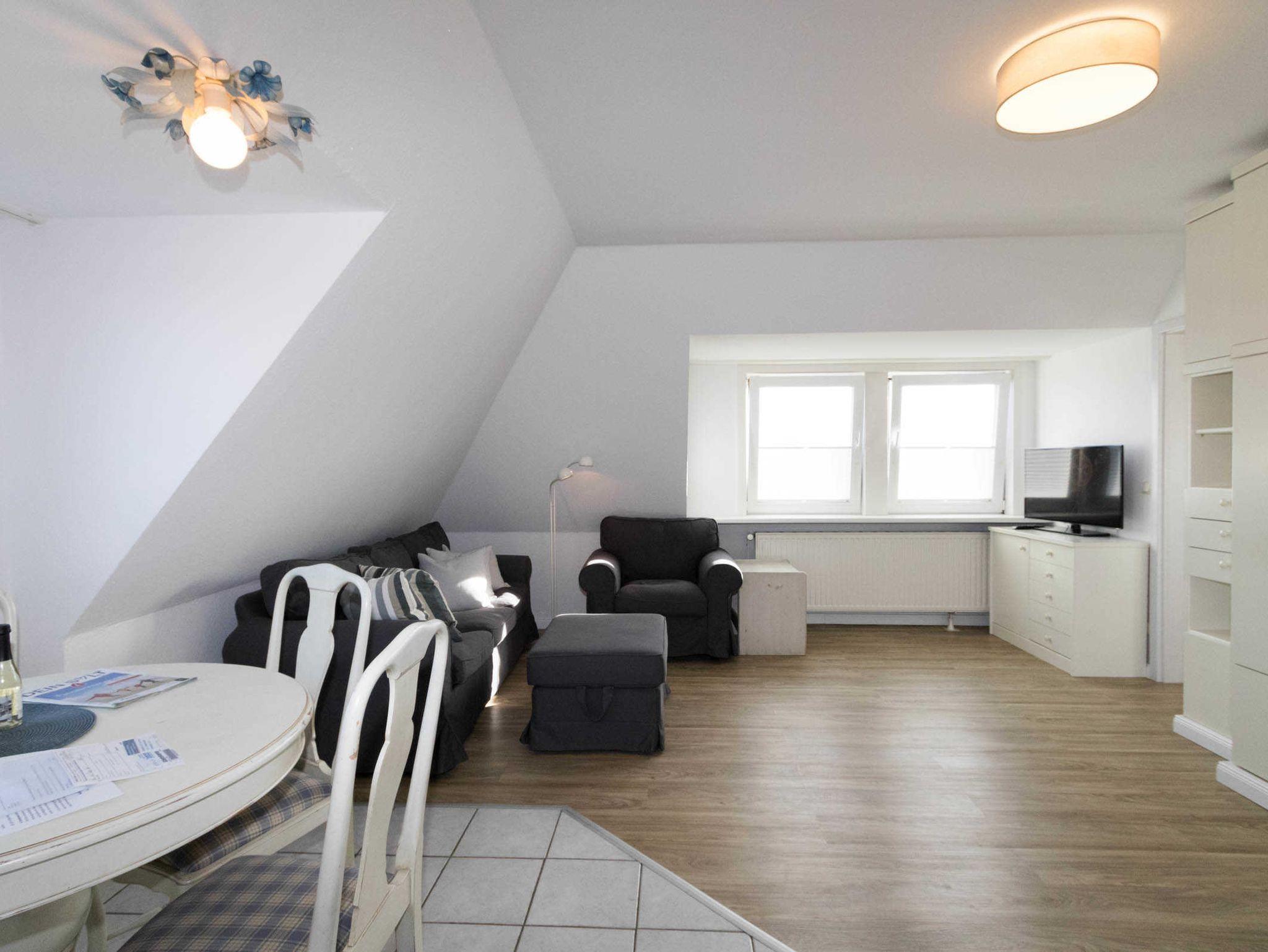 Hübsche Ferienwohnung mit traumhaftem Rundumblick auf beide Meere und den Ort Hörnum. Eingerichtet für 4 Personen.
