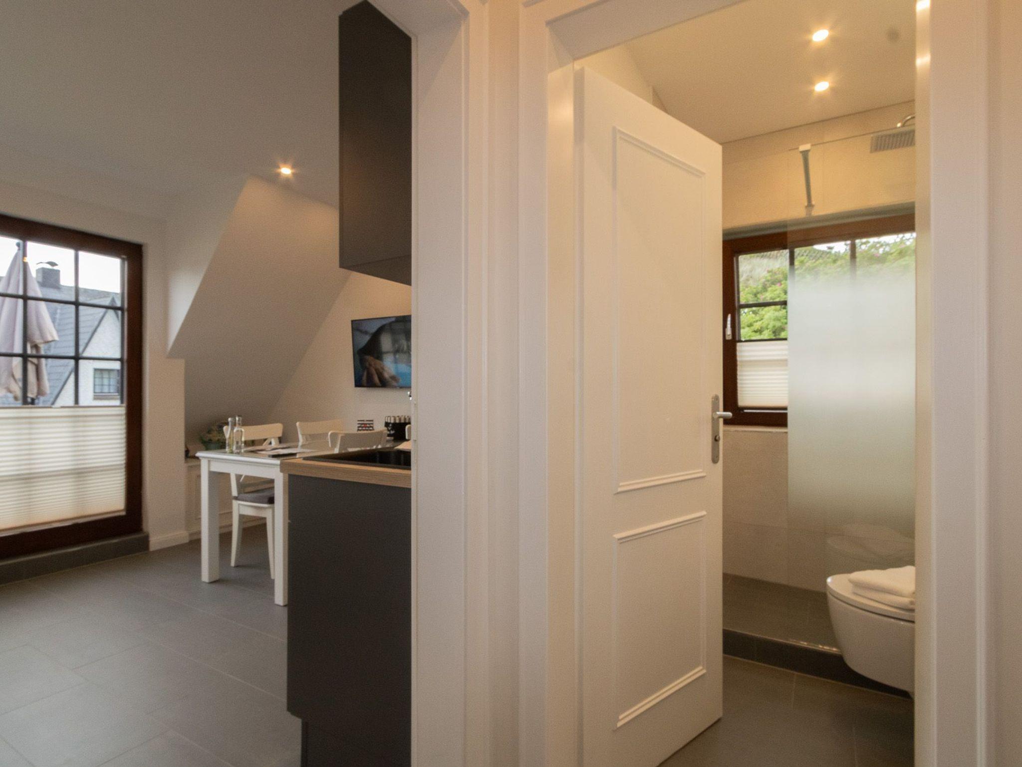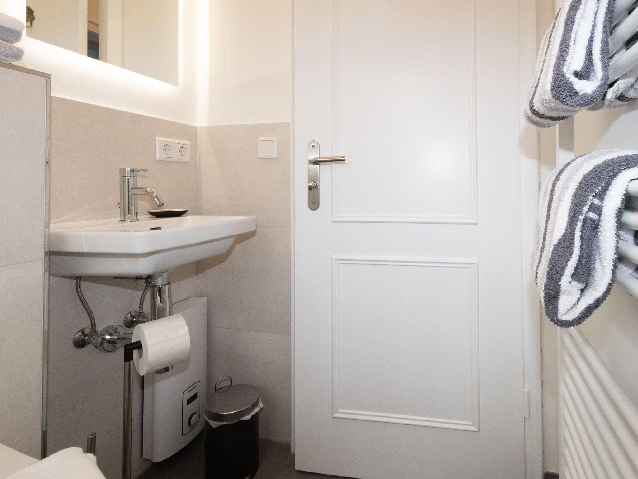 Ein weiteres Highlight der Wohnung ist das Badezimmer, das mit einer Dusche ausgestattet ist und durch Fußbodenheizung zusätzlichen Komfort bietet. Für weiteren Komfort sorgen eine Waschmaschine und ein Trockner, die Gemeinschaftlich genutzt werden können (im Nebenhaus).