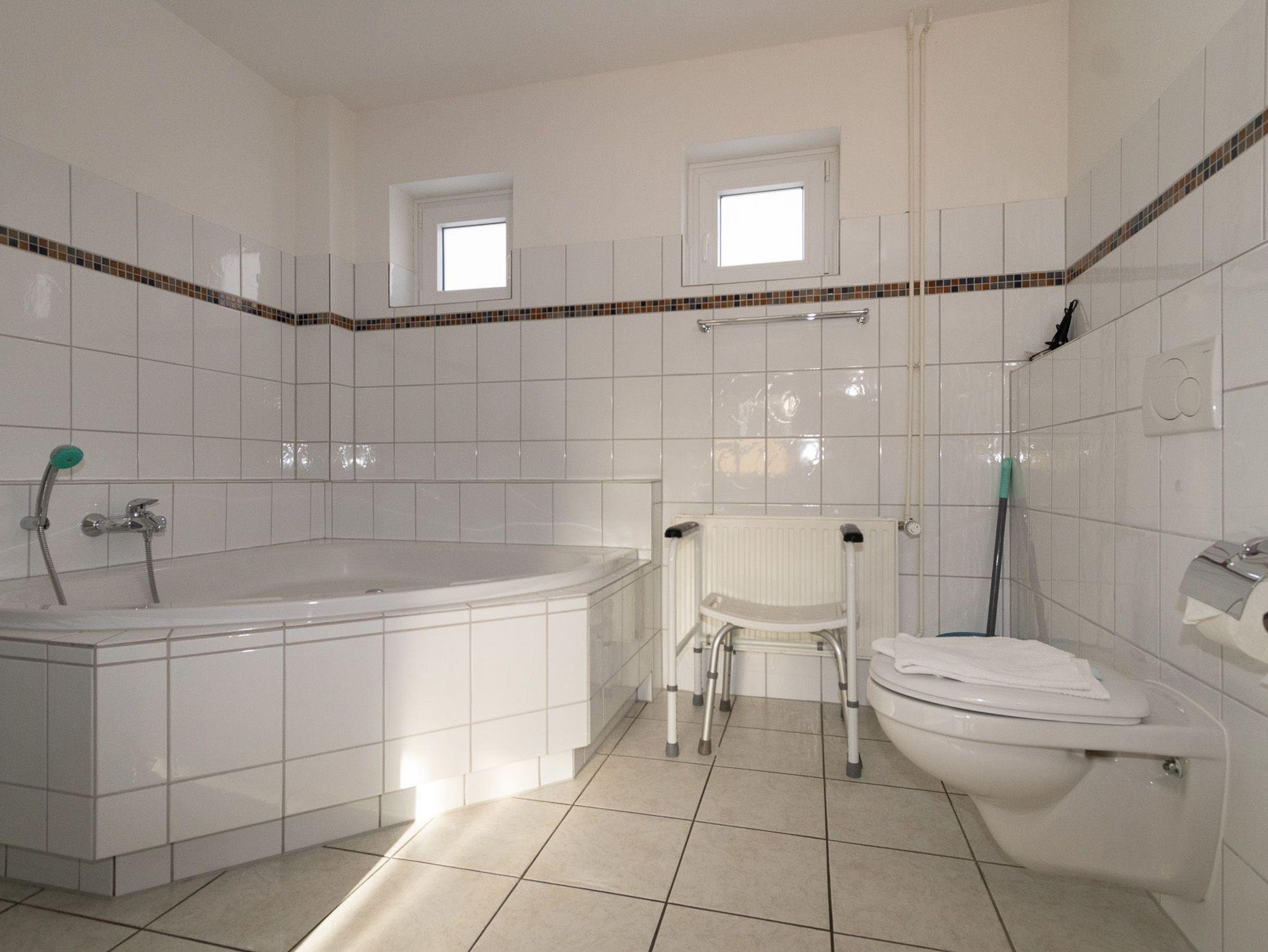 Ebenerdig und ohne Barrieren ist diese Wohnung auch für Rollstuhlfahrer geeignet. Die Wohnung verfügt über 2 Schlafzimmer mit Doppelbetten und einen geräumigen Wohn-/Essraum mit Küchenzeile. Im Wohnbereich befindet sich noch eine Schlafcouch. Das moderne Bad verfügt über eine große Dusche und eine Badewanne mit Wirlpoolfunktion. Auf zwei Terrassen, die komplett mit Gartenmöbeln und einem Strandkorb ausgestattet sind, findet sich je nach Tageszeit bestimmt ein Sonnenplatz für Sie.