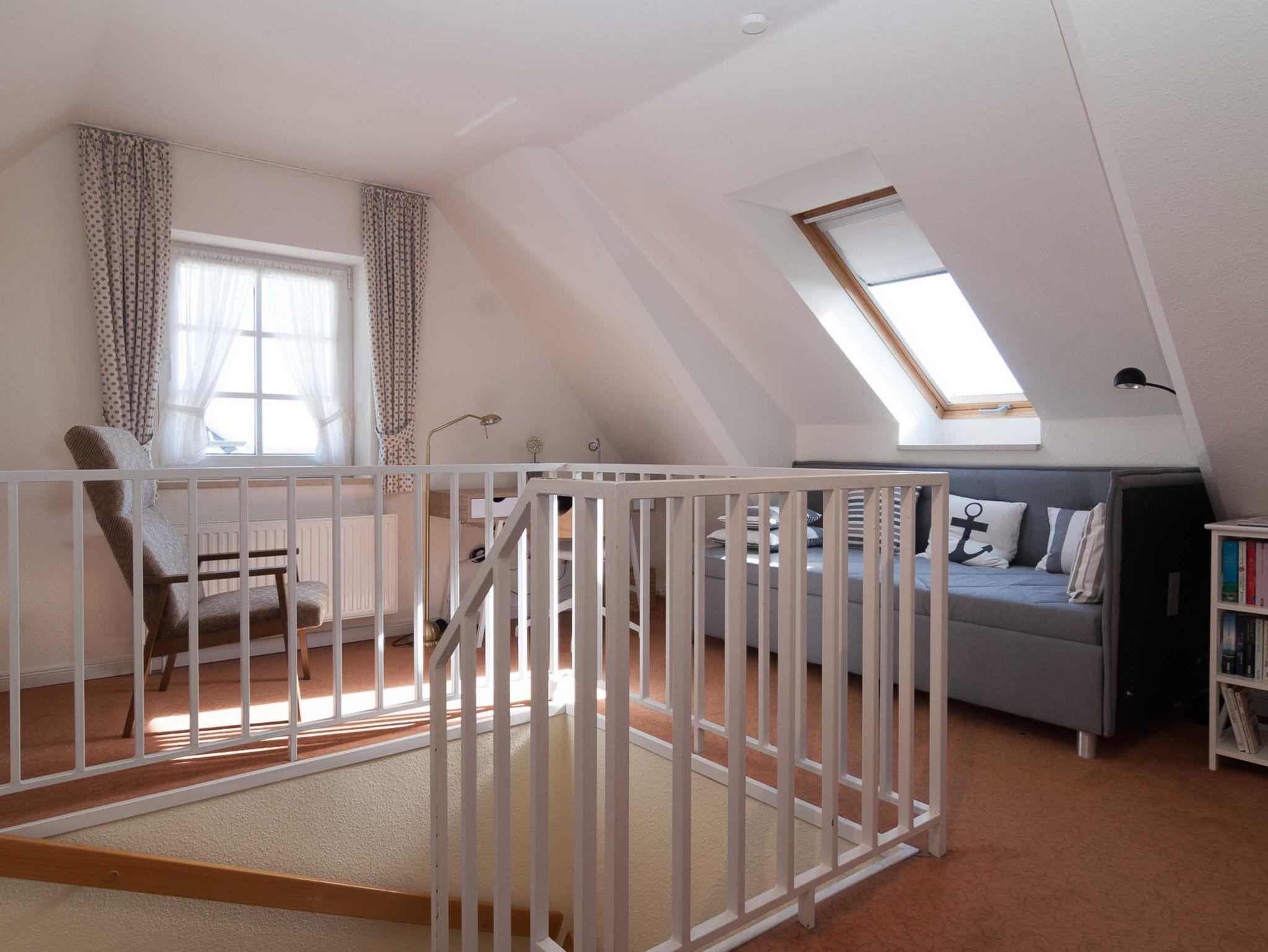 Die Wohnung ist für 2 + 2 Personen (2 Erwachsene und 2 Kinder) ausgestattet. Sie befindet sich im 1. OG und ist wie folgt ausgestattet: 1 Schlafzimmer mit Doppelbett, modernes Duschbad, Wohnzimmer mit offener Küchenzeile und Balkon zum Süden. Auf dem Balkon können Sie den ganzen Tag die Sonne und den Panoramablick geniessen. Über eine Treppe im Flur können Sie die Galerie erreichen, in der sich die Betten für die 3. und 4. Person befinden.