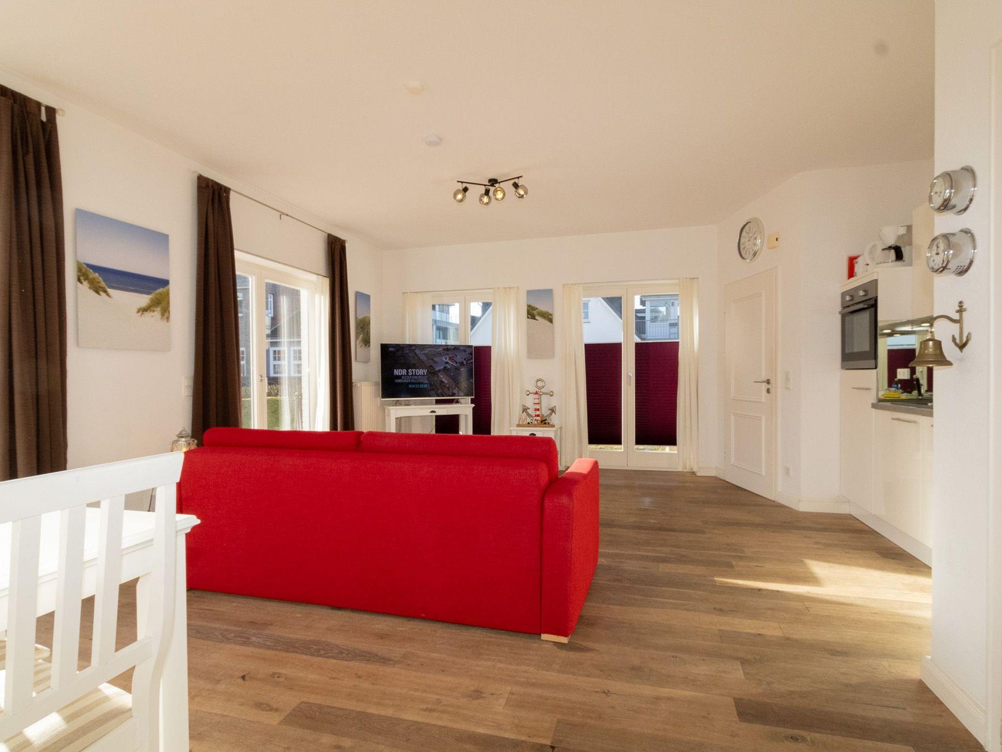 Mitten im Ort und doch ruhig gelegen, befindet sich diese Ferienwohnung in einer kleinen Anlage. Der Bäcker und die Einkaufsmöglichkeiten liegen in unmittelbarer Nähe. Strand und Hafen sind in max. 5 Gehminuten zu erreichen.