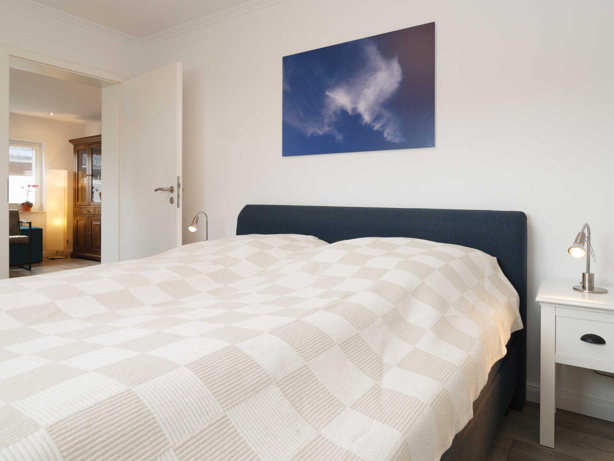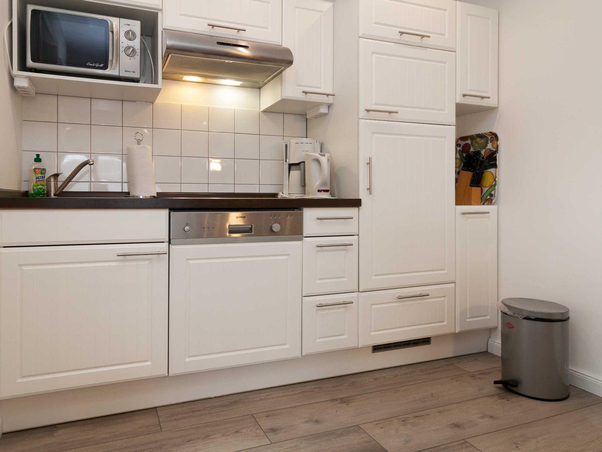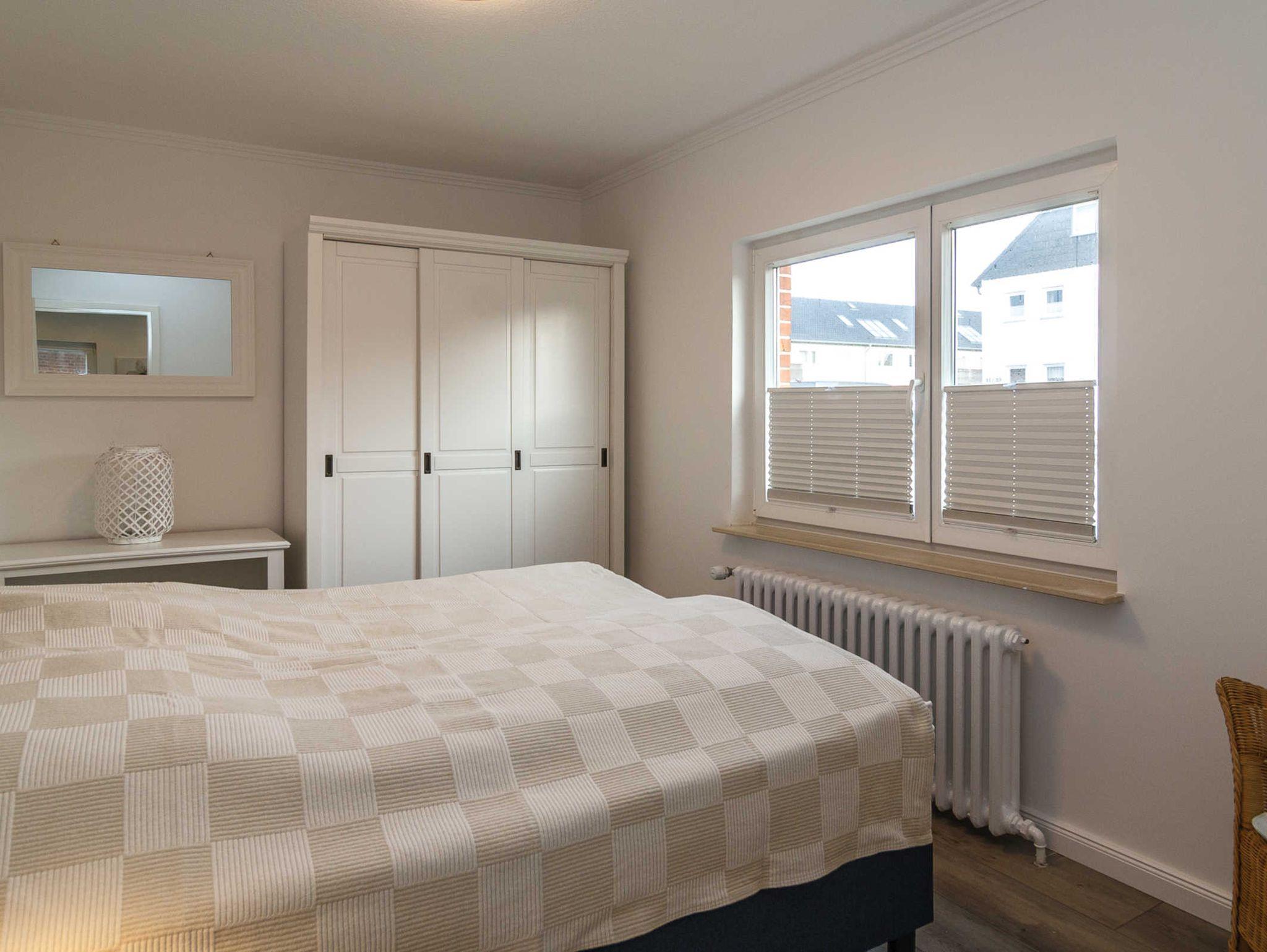 Gepflegtes 2 Zimmer Appartement mit ca. 45 m² im EG; 1 Wohn-/Schlafraum mit Doppelschlafcouch, Tisch, Korbsessel, Sat-TV, kl. Kompaktanlage, Essplatz für 4 Personen, offene Küchenzeile mit 4 Plattenherd, Backofen, kleines Gefrierfach; Schlafraum mit Doppelbett; Duschbad/WC. Der Wohnraum ist mit Stabparkett und der Schlafraum mit Laminat ausgelegt.