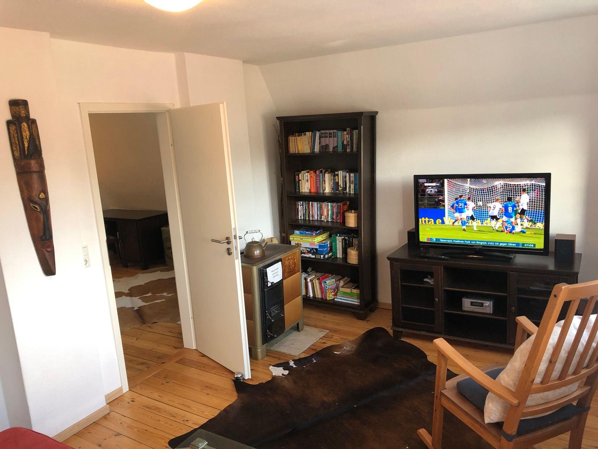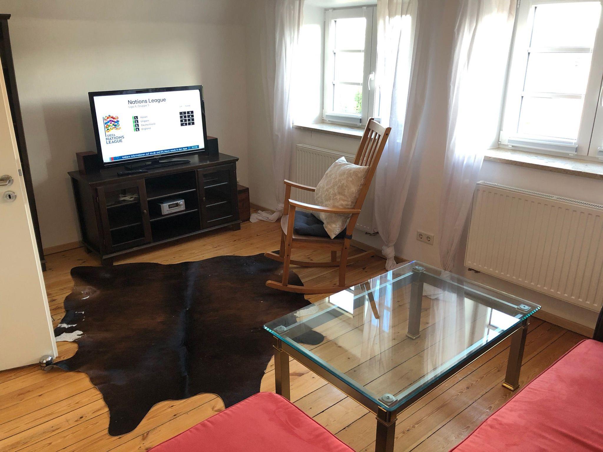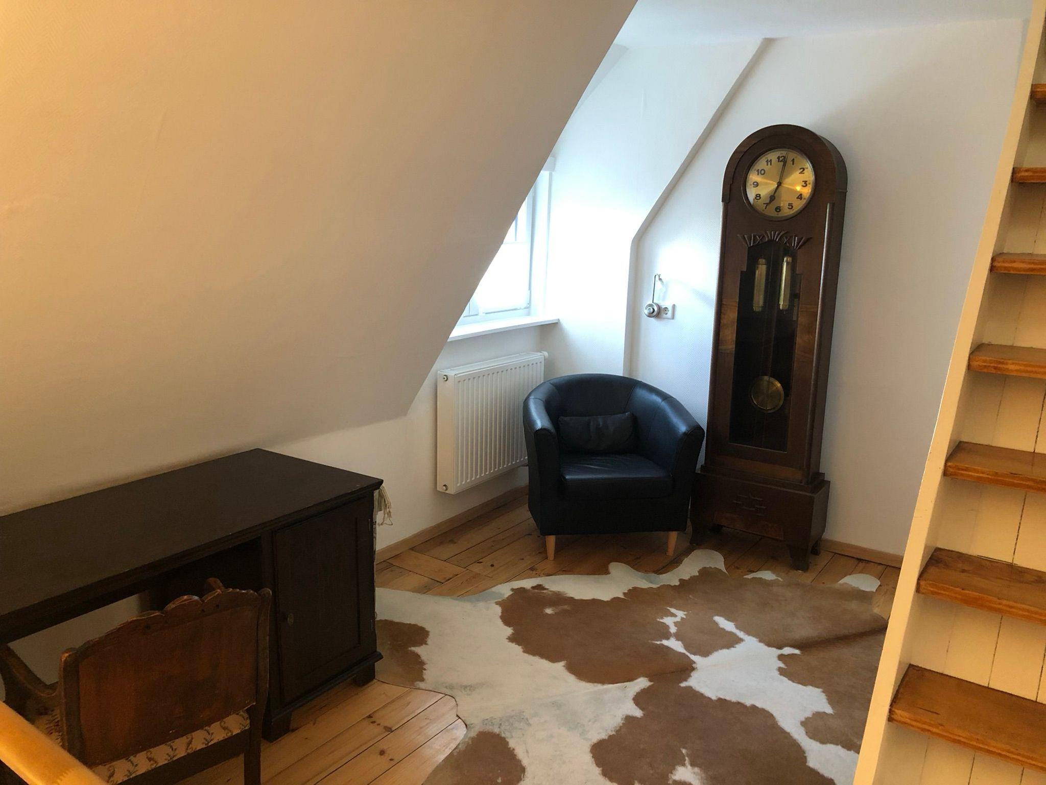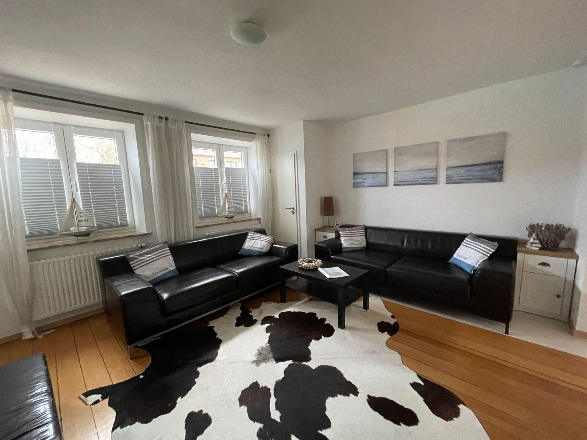 Im Erdgeschoss befindet sich ein Wohnzimmer mit Couchgarnitur (Leder), Couchtisch, Sessel, Regalwand und Flachbild-TV. Schlafzimmer mit Doppelbett (160 x 200 cm). Separate Küche: Glas-Esstisch mit 4 Stühlen und Bank, Backofen, Geschirrspüler, Mikrowelle, Kachelofen (zur Zeit nicht nutzbar!). Badezimmer mit Dusche/WC und Badewanne sowie ein separates Gäste-WC. Im Obergeschoß befindet sich ein Wohn-Schlafraum mit Schlafcouch für 1 Personen, ein Couchtisch, ein zweiter Flachbild-TV und ein Kachelofen. Ausserdem ein Schlafzimmer mit Doppelbett (160 x 200 cm), Kleiderschrank und angrenzendem Badezimmer mit Dusche/WC. Der Flur (OG) kann als Arbeitsbereich genutzt werden, Schreibtisch, Stuhl und ein Sessel sind vorhanden. Das gesamte Haus ist mit Dielen-Holzfussboden ausgelegt.WLAN (100 MBits) vorhanden.