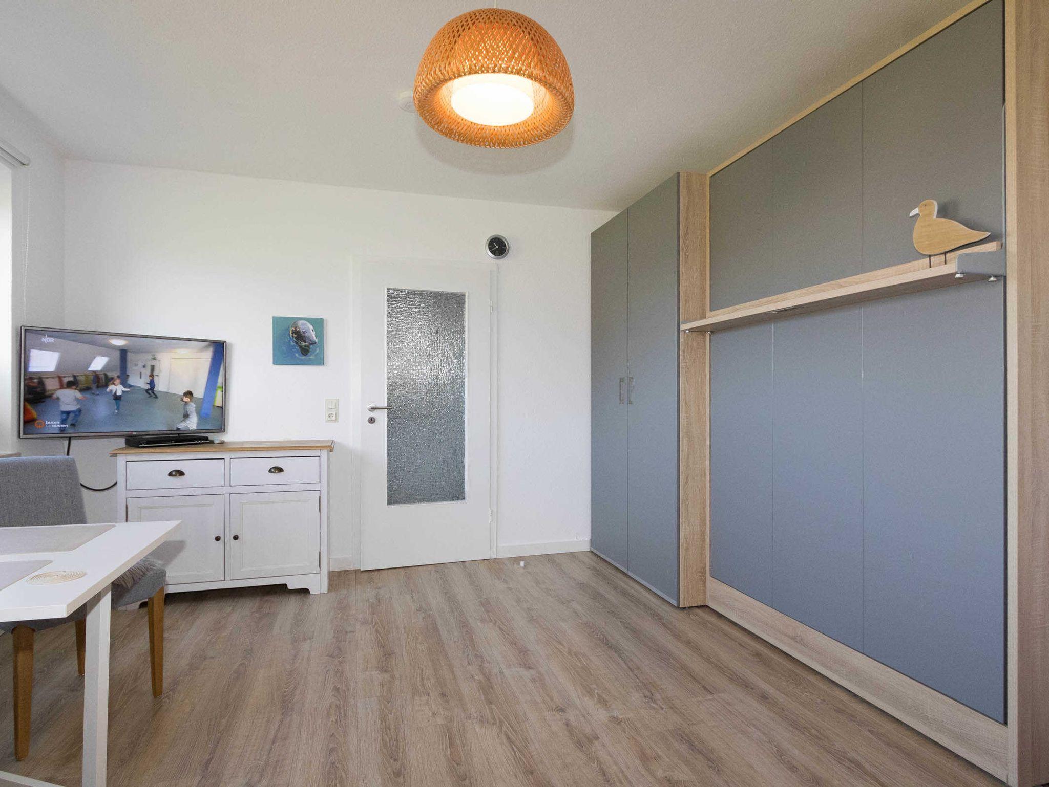 Mit viel Liebe und Sorgfalt haben die Eigentümer diese gemütliche Ferienwohnung eingerichtet. Sie ist aufgeteilt in einen kombinierten Wohn-Schlafraum, eine kleine seperate Küche und ein Innen liegendes Duschbad. Die neue Küche ist mit einem Geschirrspüler, einer Mikrowelle sowie einem 2-Platten Herd ausgestattet. Der Wohn-Schlafraum verfügt über eine kleine Essecke, eine gemütliche, ausziehbare Sofaecke und einem Schrankbett mit einer Liegefläche von 2,00 m x 1,40 mtr. Neben einem Flat-Screen-Fernseher steht Ihnen auch ein DVD-Player und eine kleine Stereoanlage zur Verfügung.