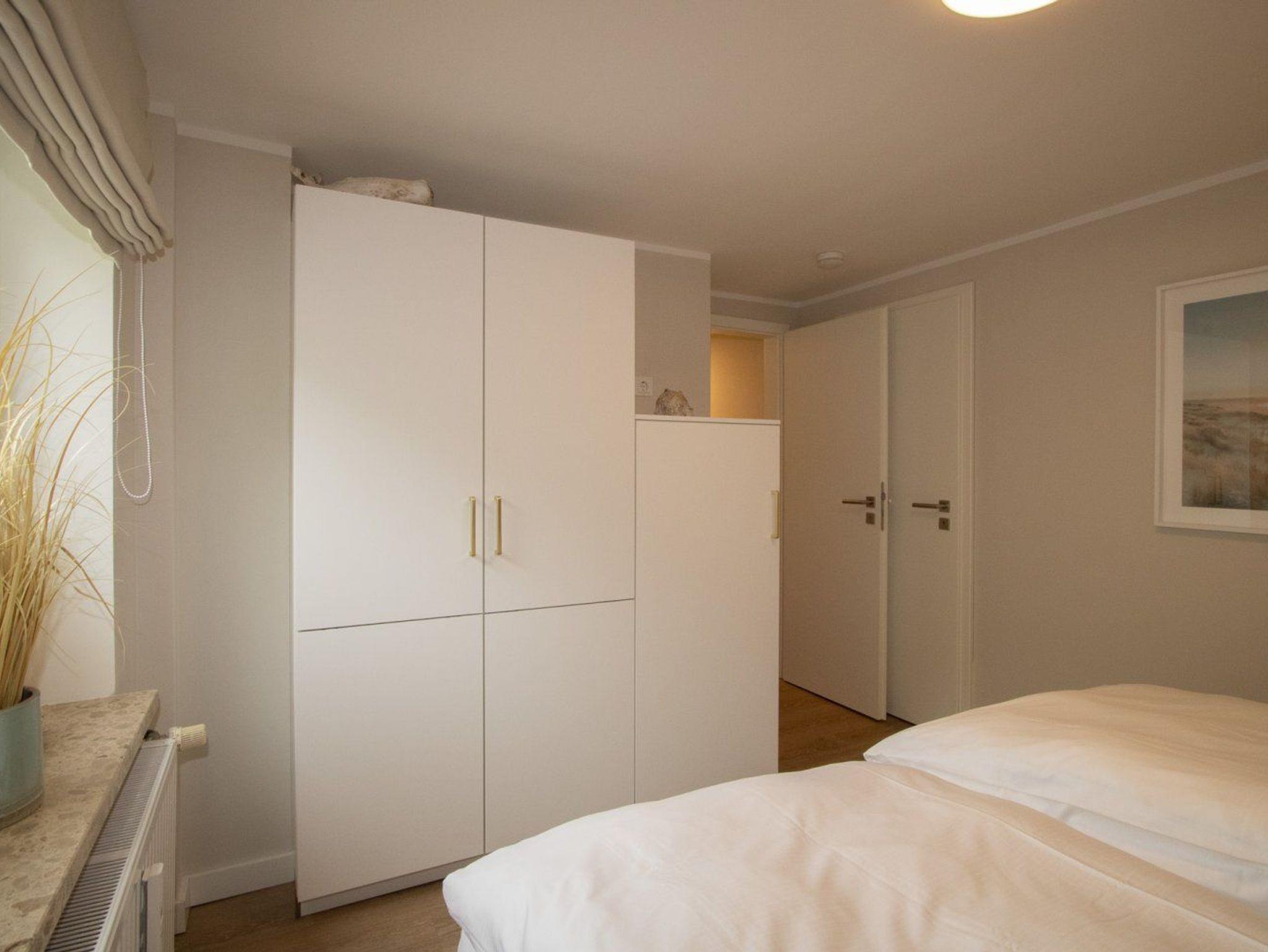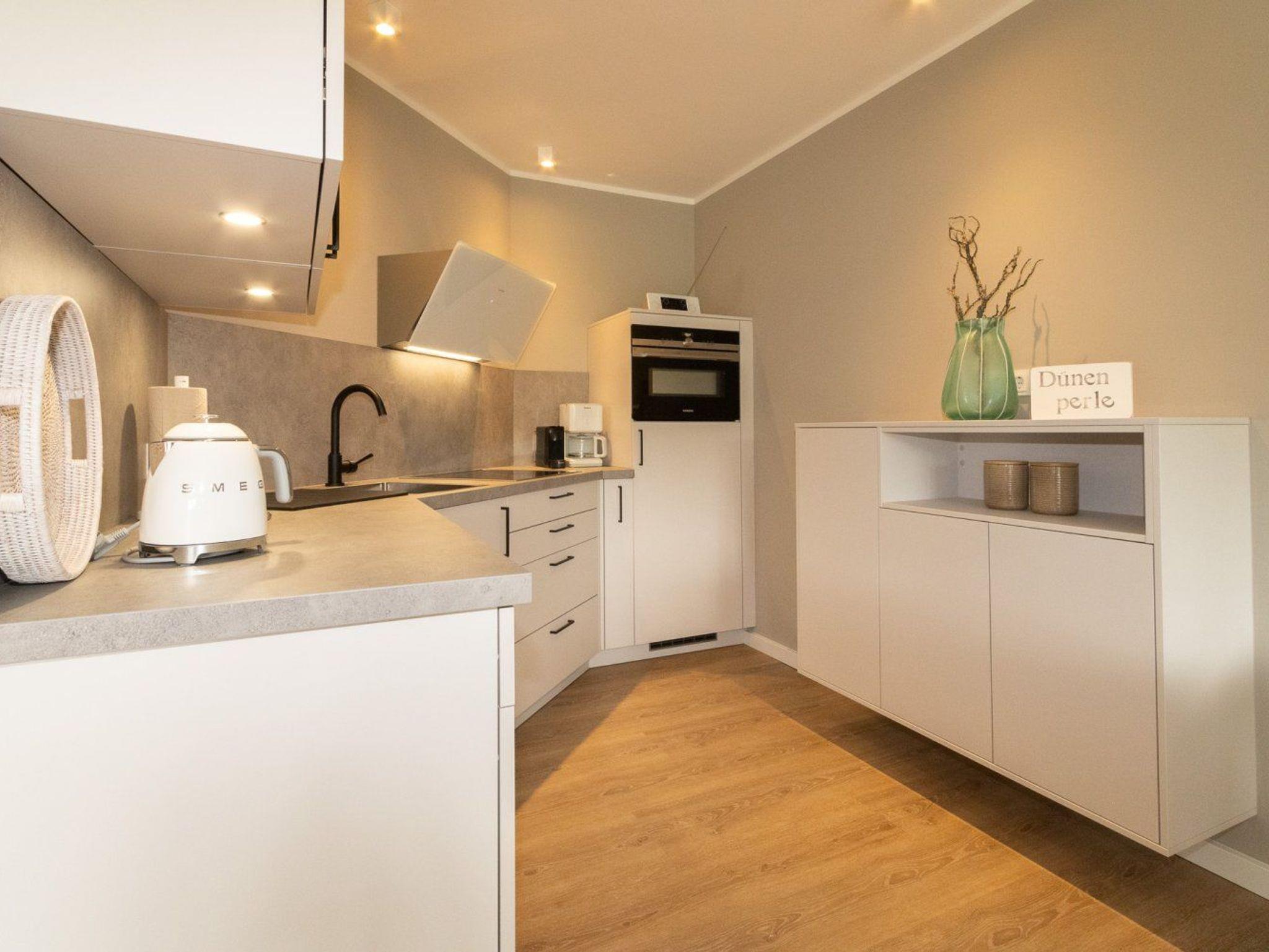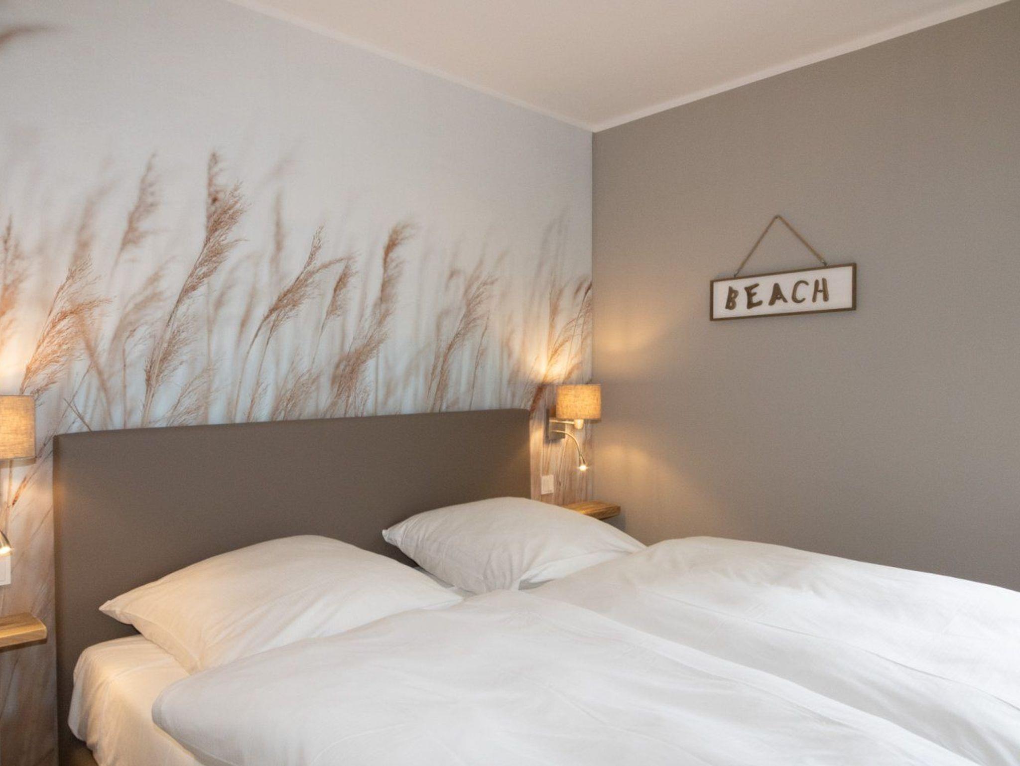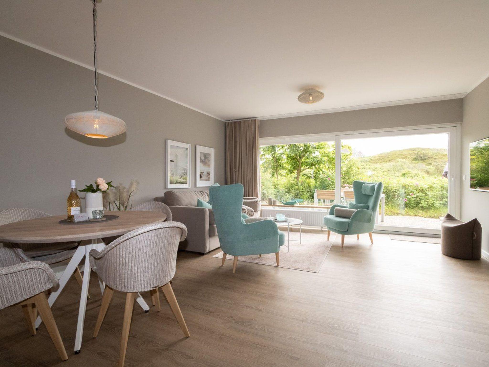 Die Ferienwohnung ist gemütlich eingerichtet und bietet Platz für 4 Personen. Im unteren Bereich der Wohnung finden Sie ein Schlafzimmer und das Duschbad. Angrenzend an den großzügigen Wohnbereich liegt die offene Küche, die modern für den alltäglichen Bedarf eingerichtet ist. Ein besonderes Highlight ist die große Terrasse, die zum Südwesten ausgerichtet ist und die viel Platz für einen sommerlichen Essplatz und einen Strandkorb bietet. Hier kann man die absolute Ruhe mit Blick ins Grüne genießen und die Seele baumeln lassen.