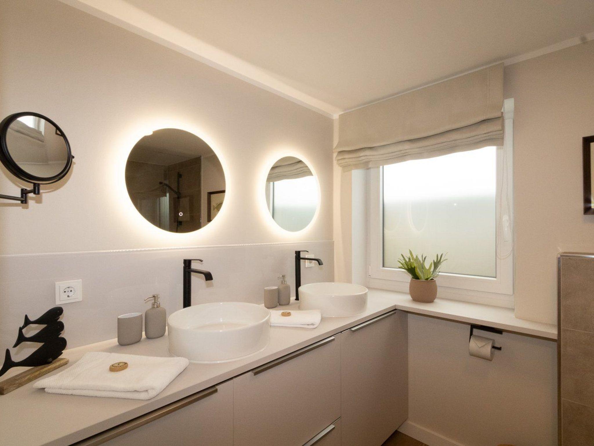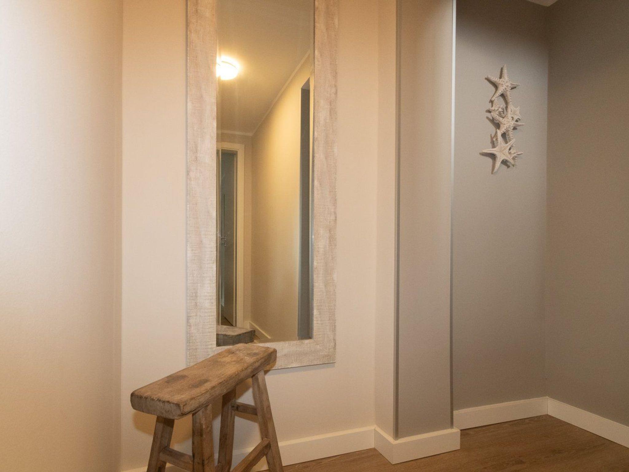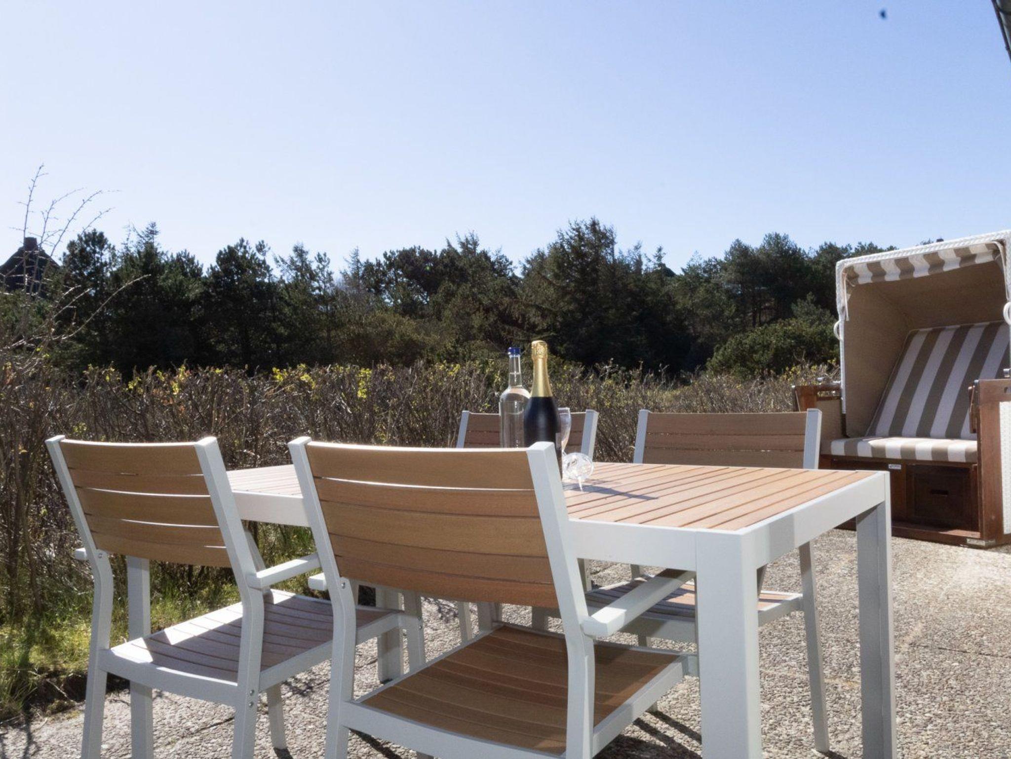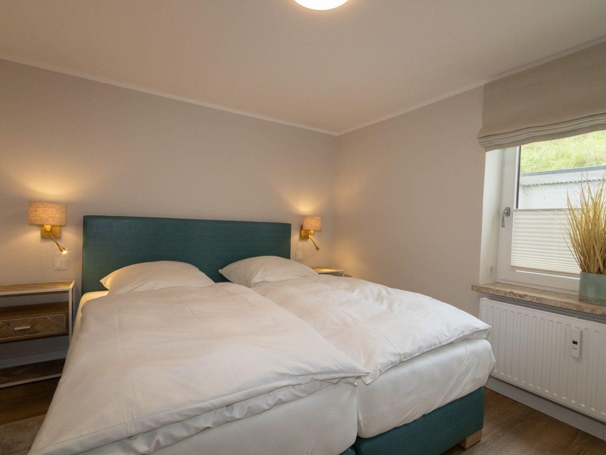 Die Ferienwohnung ist gemütlich eingerichtet und bietet Platz für 4 Personen. Im unteren Bereich der Wohnung finden Sie ein Schlafzimmer und das Duschbad. Angrenzend an den großzügigen Wohnbereich liegt die offene Küche, die modern für den alltäglichen Bedarf eingerichtet ist. Ein besonderes Highlight ist die große Terrasse, die zum Südwesten ausgerichtet ist und die viel Platz für einen sommerlichen Essplatz und einen Strandkorb bietet. Hier kann man die absolute Ruhe mit Blick ins Grüne genießen und die Seele baumeln lassen.