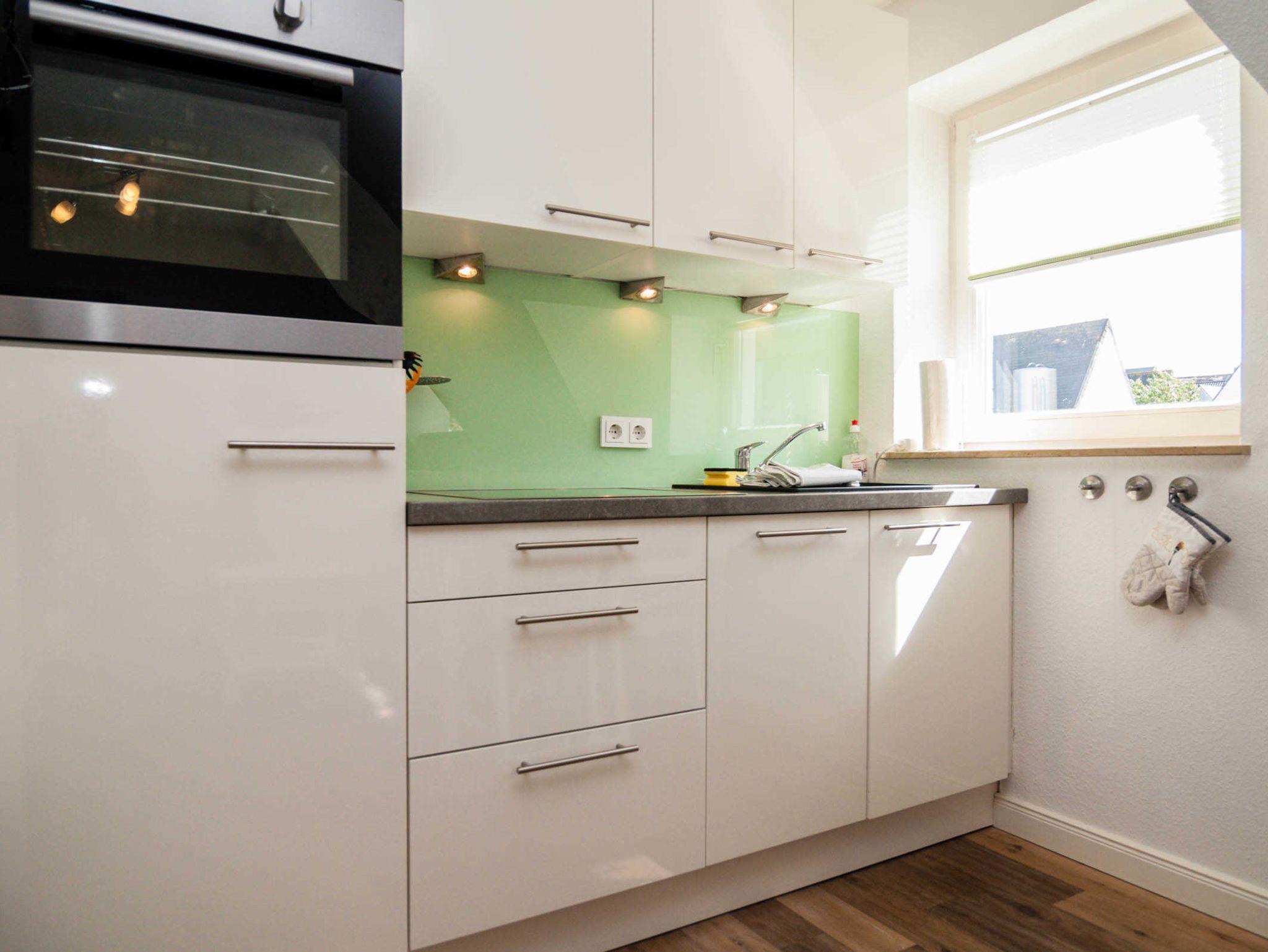Desweiteren ist die Küche mit Wasserkocher, Toaster, Nespresso-Kapselmaschine, Milchschäumer, WMF Kaffeemaschine, Mixer, Pürierstab und Küchenwaage ausgestattet. Weiterhin stehen Ihnen in der Wohnung ein Föhn, Bügeleisen, Bügelbrett, Wäscheständer und Staubsauger zur Verfügung.