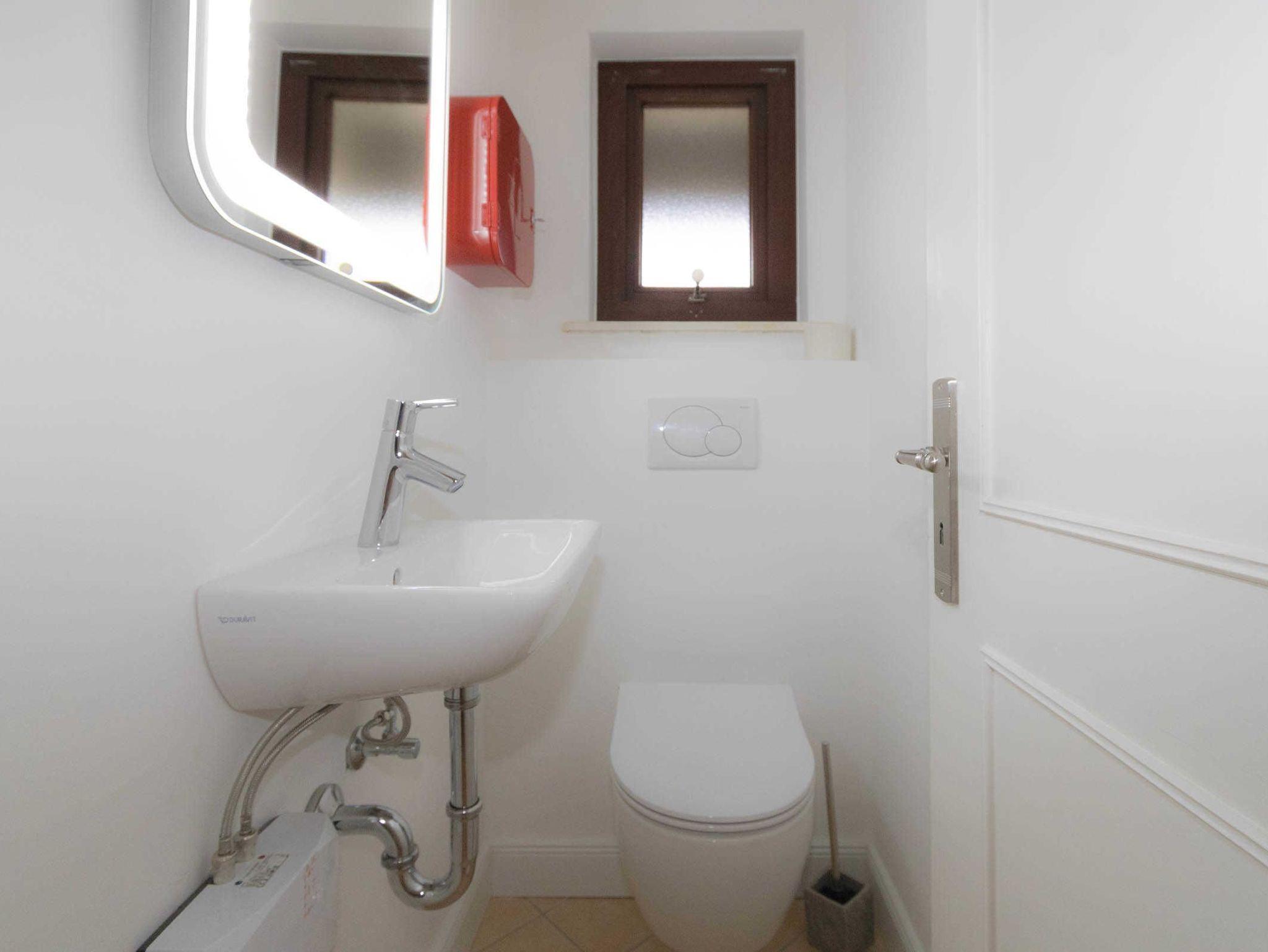 Im OG befindet sich das große Badezimmer mit Badewanne und ein Schlafzimmer.