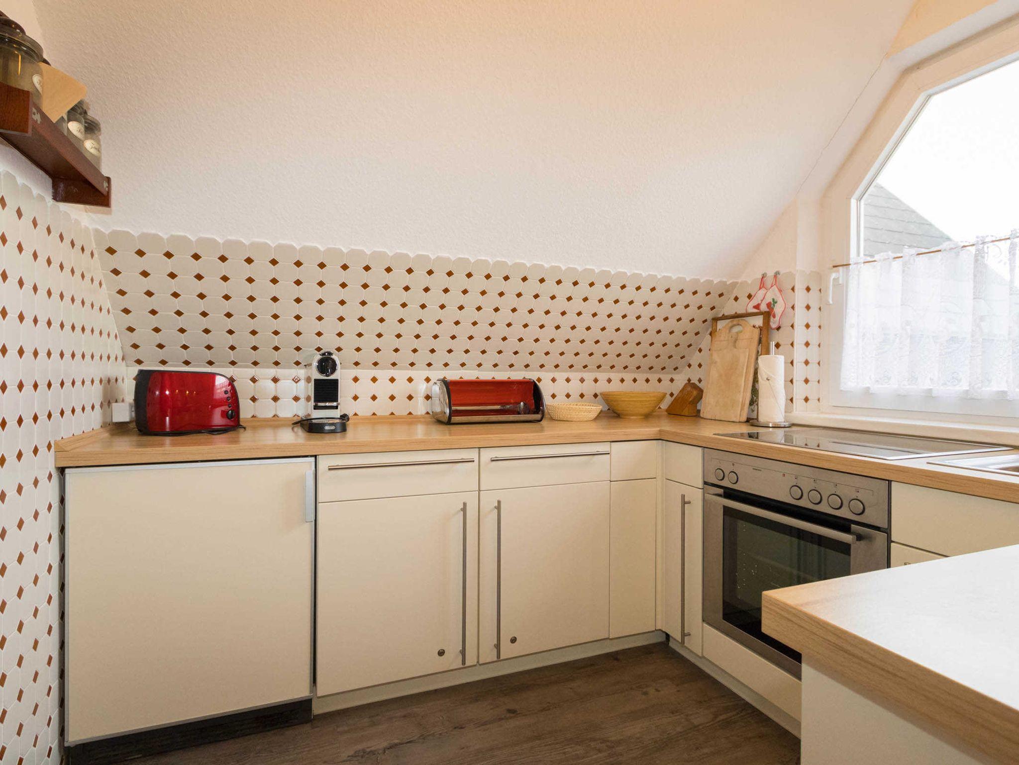 Das helle und große Wohnzimmer mit SAT-TV und großer Couchecke lädt zum Entspannen ein. Im stilvollen Esszimmer mit Platz für 5 Personen können Sie die Mahlzeiten genießen, die Sie in der Küche mit Geschirrspüler und Backofen zubereitet haben. In den 3 Schlafzimmern, zwei mit Doppelbett und eines mit Einzelbett, können Sie gemütlich eingekuschelt den nächsten Urlaubstag planen. Ein Duschbad ist auch vorhanden.