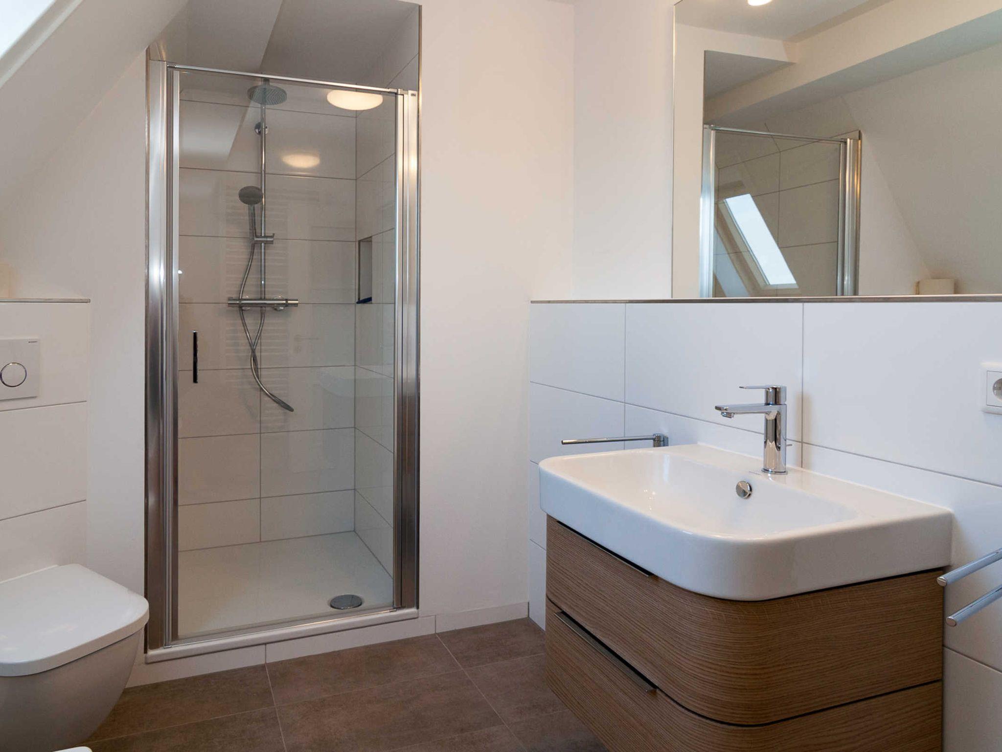 Die Räume sind hell und freundlich eingerichtet. Drei Schlafzimmer bieten Familien bis zu acht Personen ausreichend Platz. Das Badezimmer im Obergeschoss wurde gerade komplett erneuert.