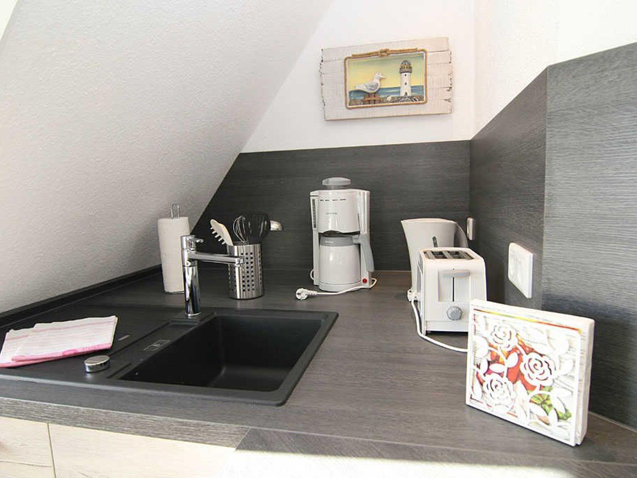 Die Wohnung selbst bietet Ihnen eine helle und freundliche Atmosphäre, ideal für entspannende Stunden. In einem offenen Wohnbereich finden Sie eine moderne Küche, die mit allem ausgestattet ist, was Sie für die Zubereitung Ihrer Mahlzeiten benötigen: von einer Ceran-Kochplatte über Küchengeräte wie Wasserkocher, Kaffeemaschine und Toaster bis hin zu ausreichenden Küchenutensilien. Der Essbereich mit Esstisch lädt auch zu geselligem Beisammensein ein.