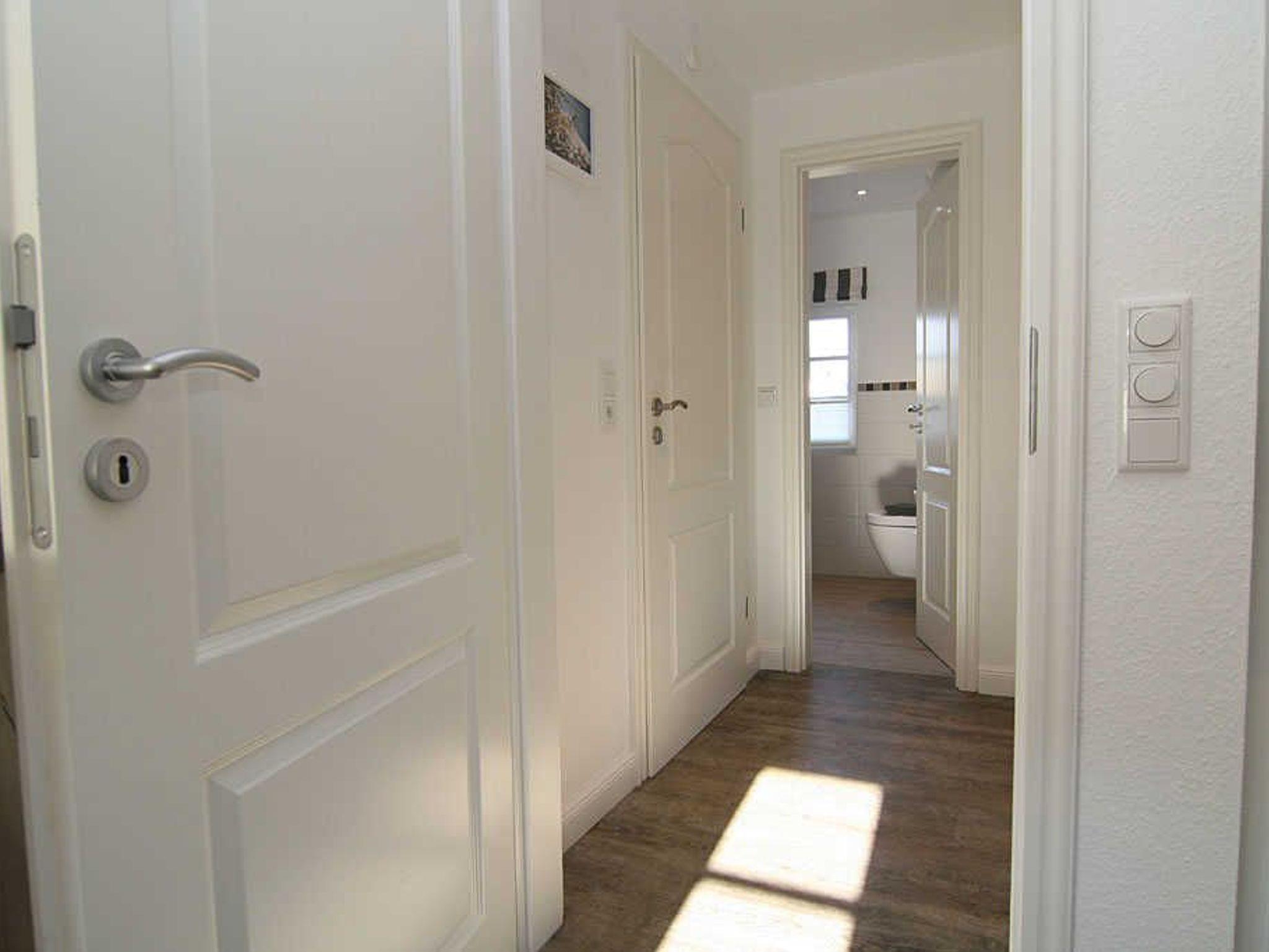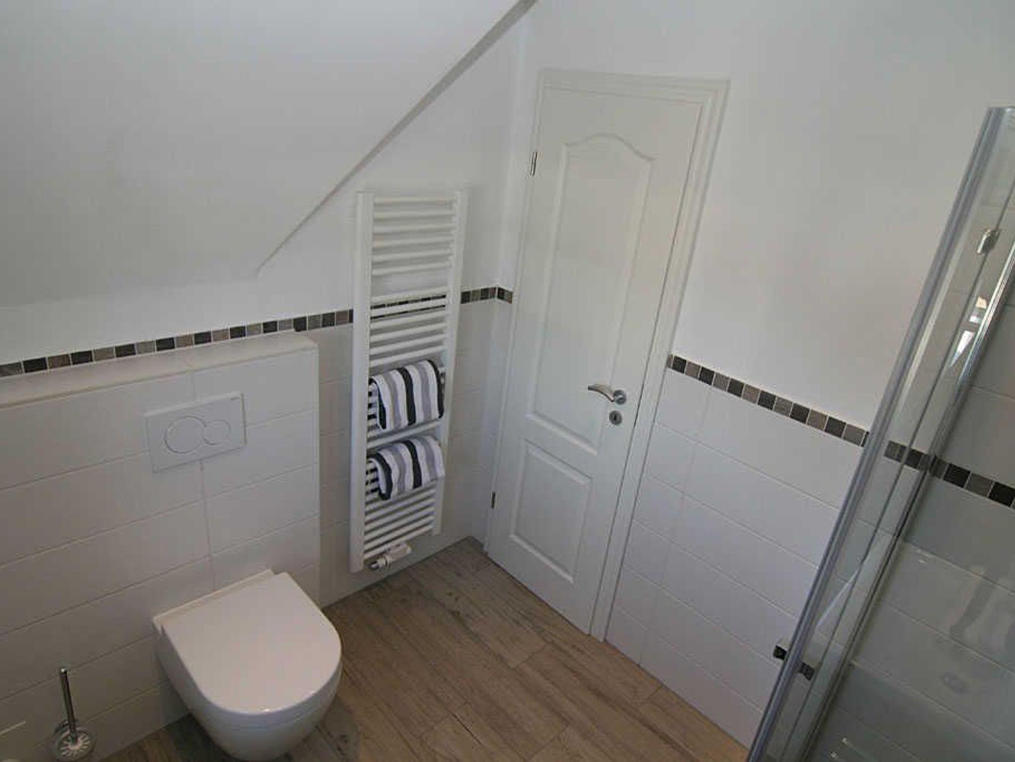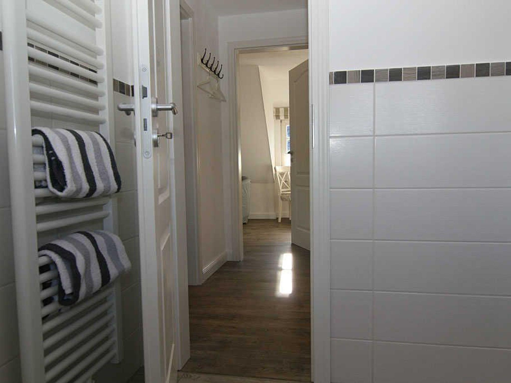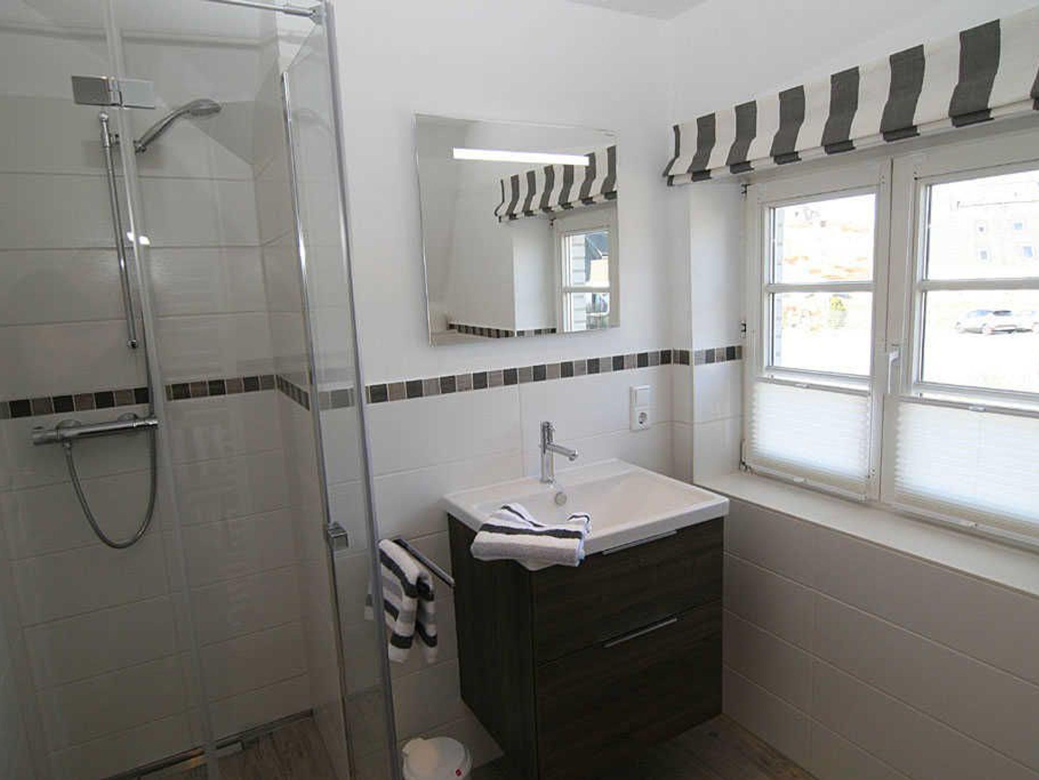 Die Wohnung verfügt über ein einladendes Schlafzimmer mit Schlafmöglichkeiten für bis zu zwei Personen. Hier können Sie in Ruhe erholsame Nächte verbringen und am Morgen erfrischt in den neuen Tag starten. Das Badezimmer ist mit einer bodengleichen Dusche sowie den üblichen Annehmlichkeiten wie Waschbecken und WC ausgestattet.