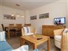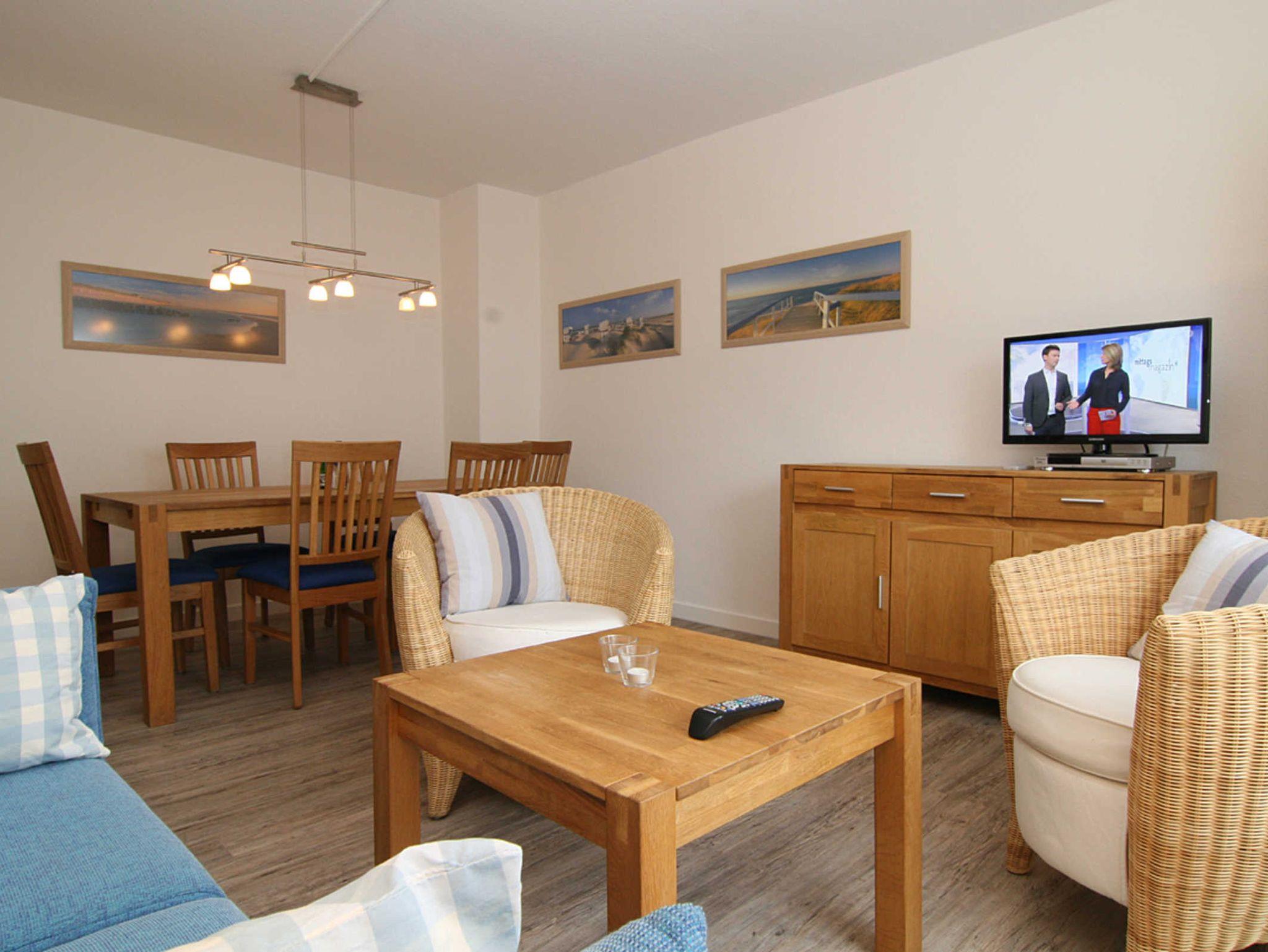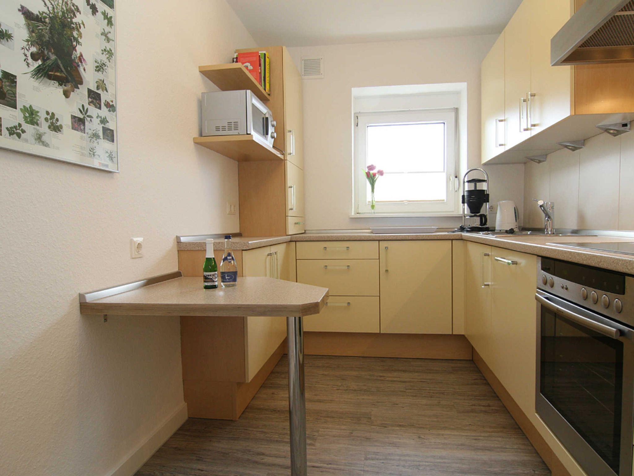 Die Wohnung verfügt über ein modern eingerichtetes Wohnzimmer mit einem großen Esstisch und einer Sitzgruppe. Das neue Sofa ist ausziehbar. In den beiden Schlafzimmern befinden sich jeweils Doppelbetten. Das Badezimmer ist mit einer Dusche ausgestattet. Die moderne Küche bietet Spülmaschine, Elektroherd mit Backofen, Mikrowelle, Kühlschrank mit Gefrierfach, Kaffee- und Espresso-Maschine. Reichhaltiges Geschirr und diverse Küchen-Utensilien stehen zur Verfügung.