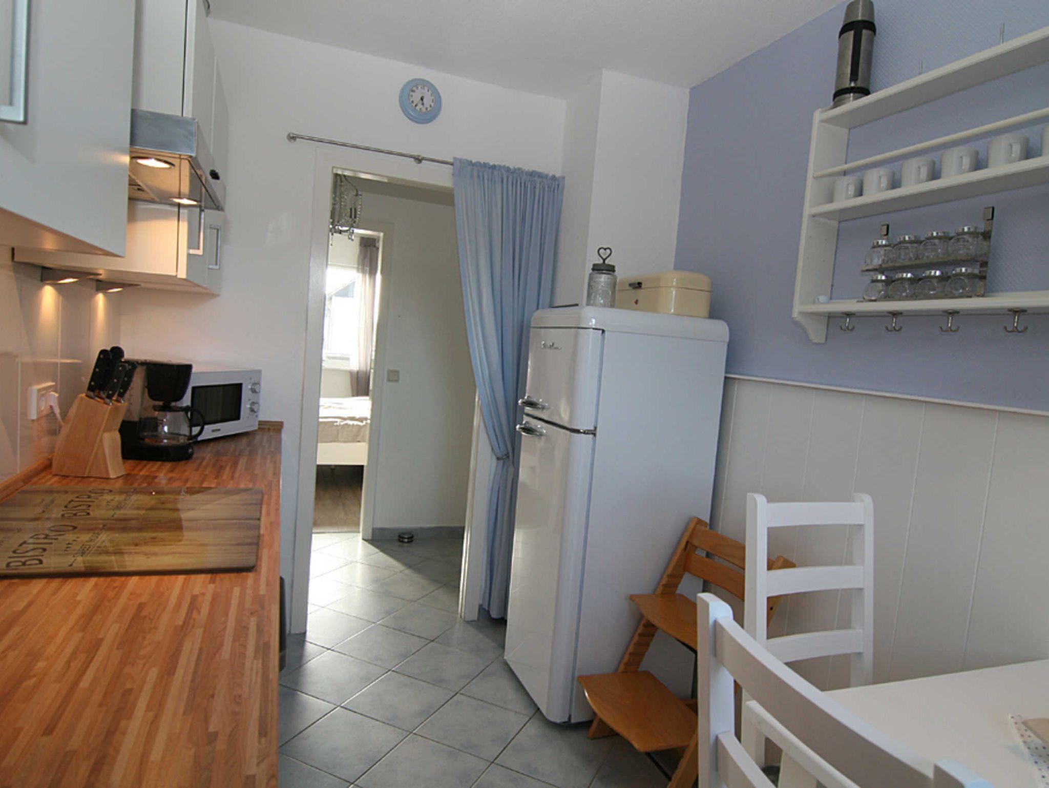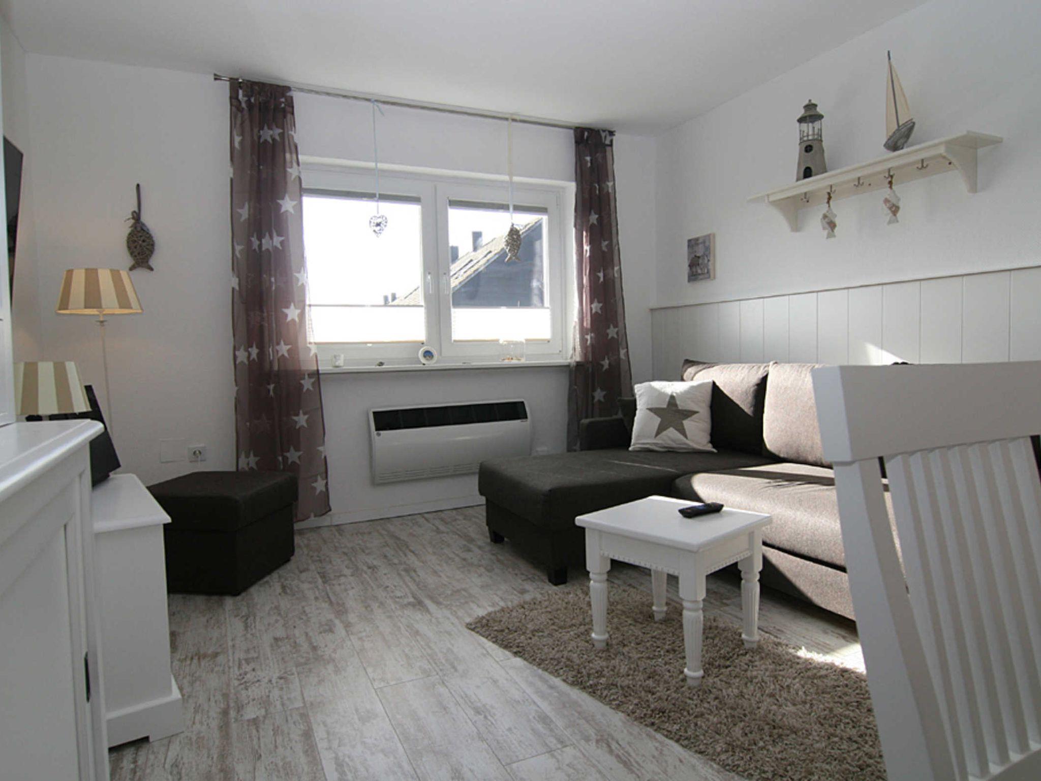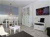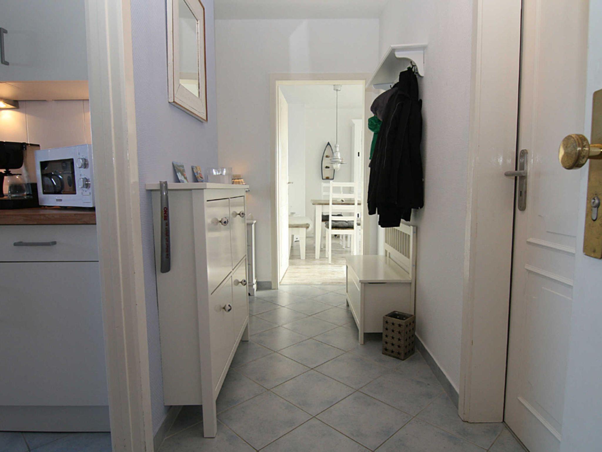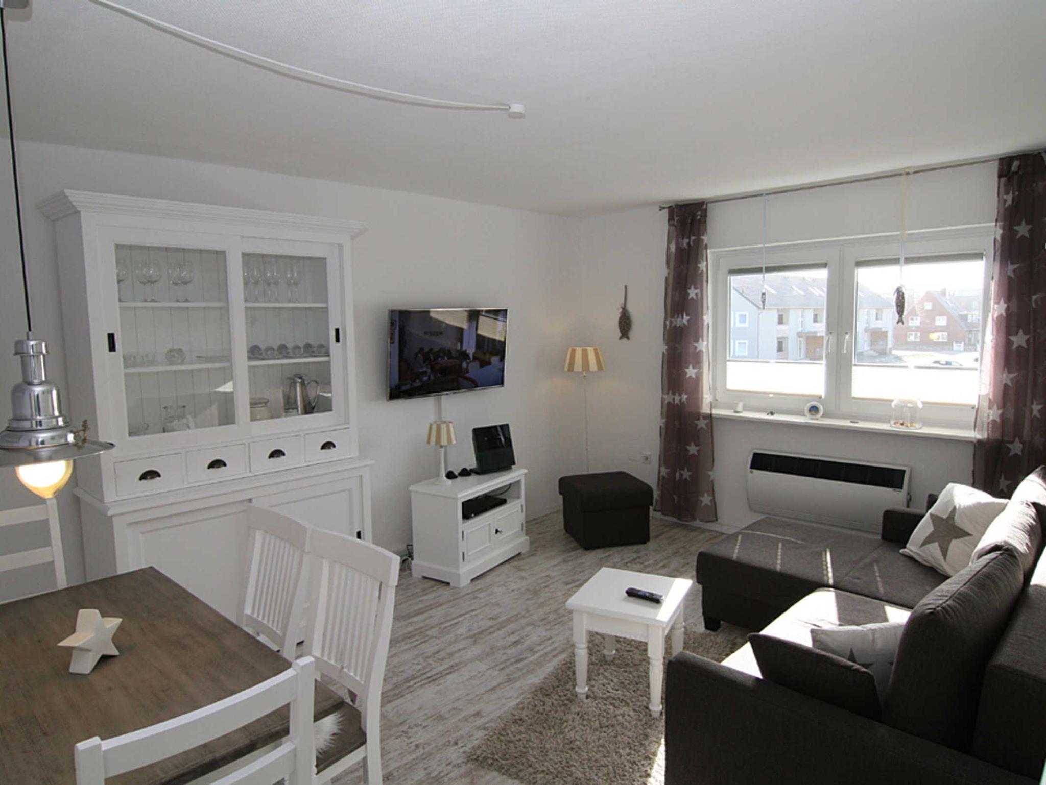 Das großzügige Wohnzimmer bietet eine gemütliche Sitzecke mit Blick auf dem Flatscreen-Fernseher sowie als zusätzliche Ausstattung einen DVD-Player. Hier befindet sich auch der Esstisch, der Platz für 4 Personen bietet. Die Wohnung verfügt über zwei Schlafzimmer, davon haben beide Schlafzimmer ein Doppelbett und Fernseher. Von dem zweiten Schlafzimmer gibt es einen Zugang zum Balkon Richtung Westen, der mit Balkonmöbeln ausgestattet ist. Die Küche ist mit einem Essplatz für 2 Personen ausgestattet und verfügt über Mikrowelle, Toaster, Kaffeemaschine, Waschmaschine, Geschirrspüler, 3-Sterne-Gefrierfach im Kühlschrank. Das moderne Duschbad rundet das Bild dieser hochwertigen Wohnung ab.