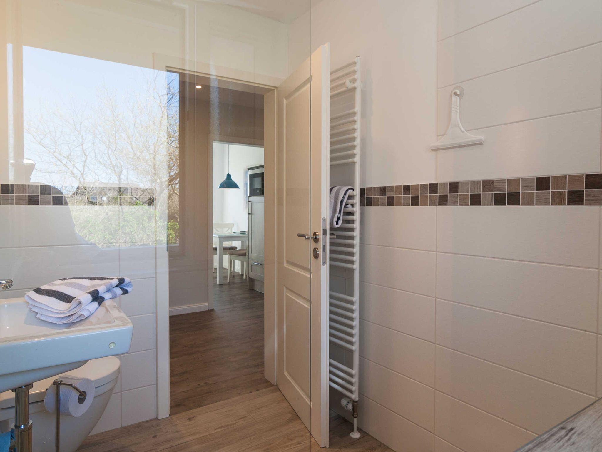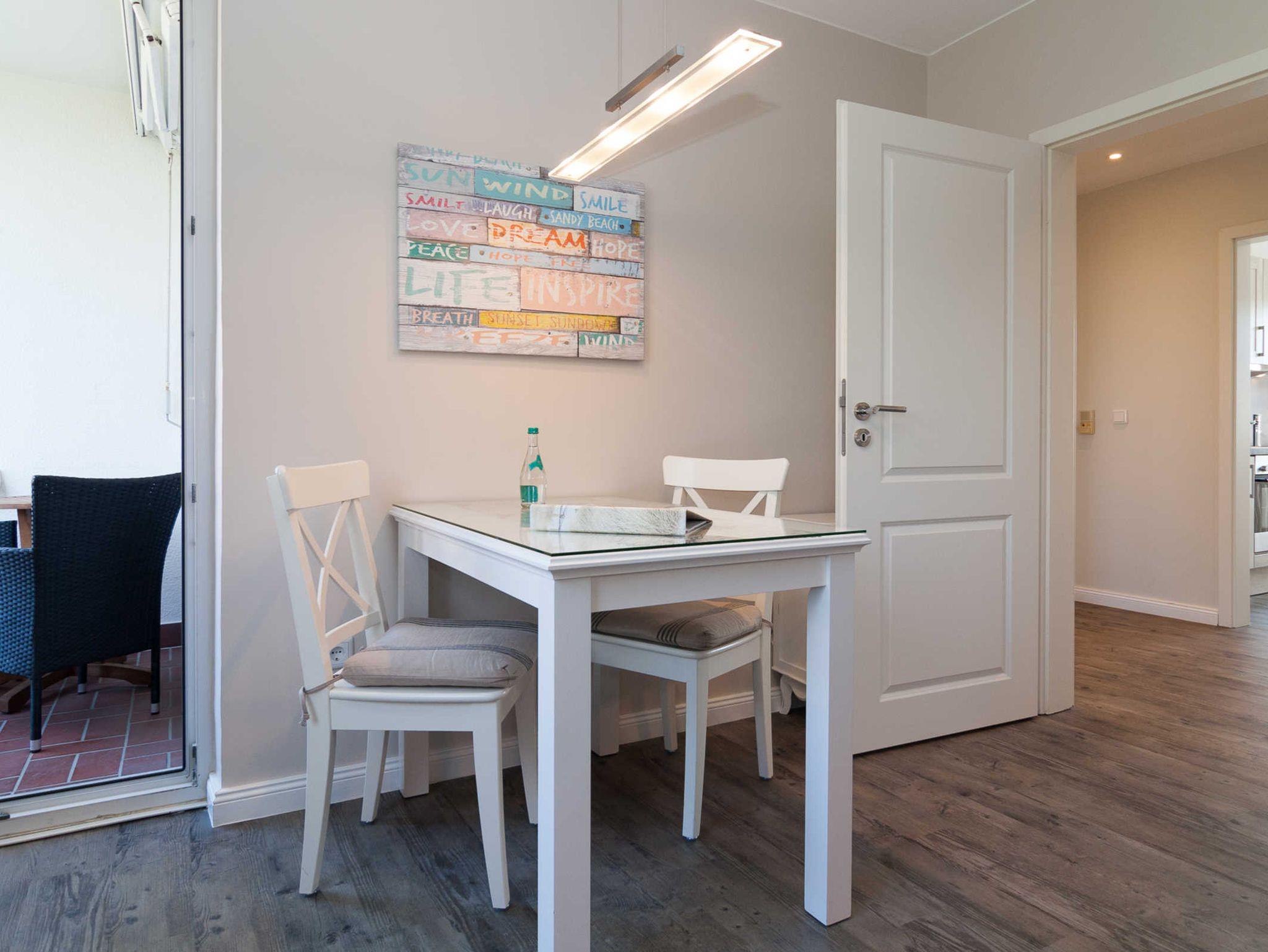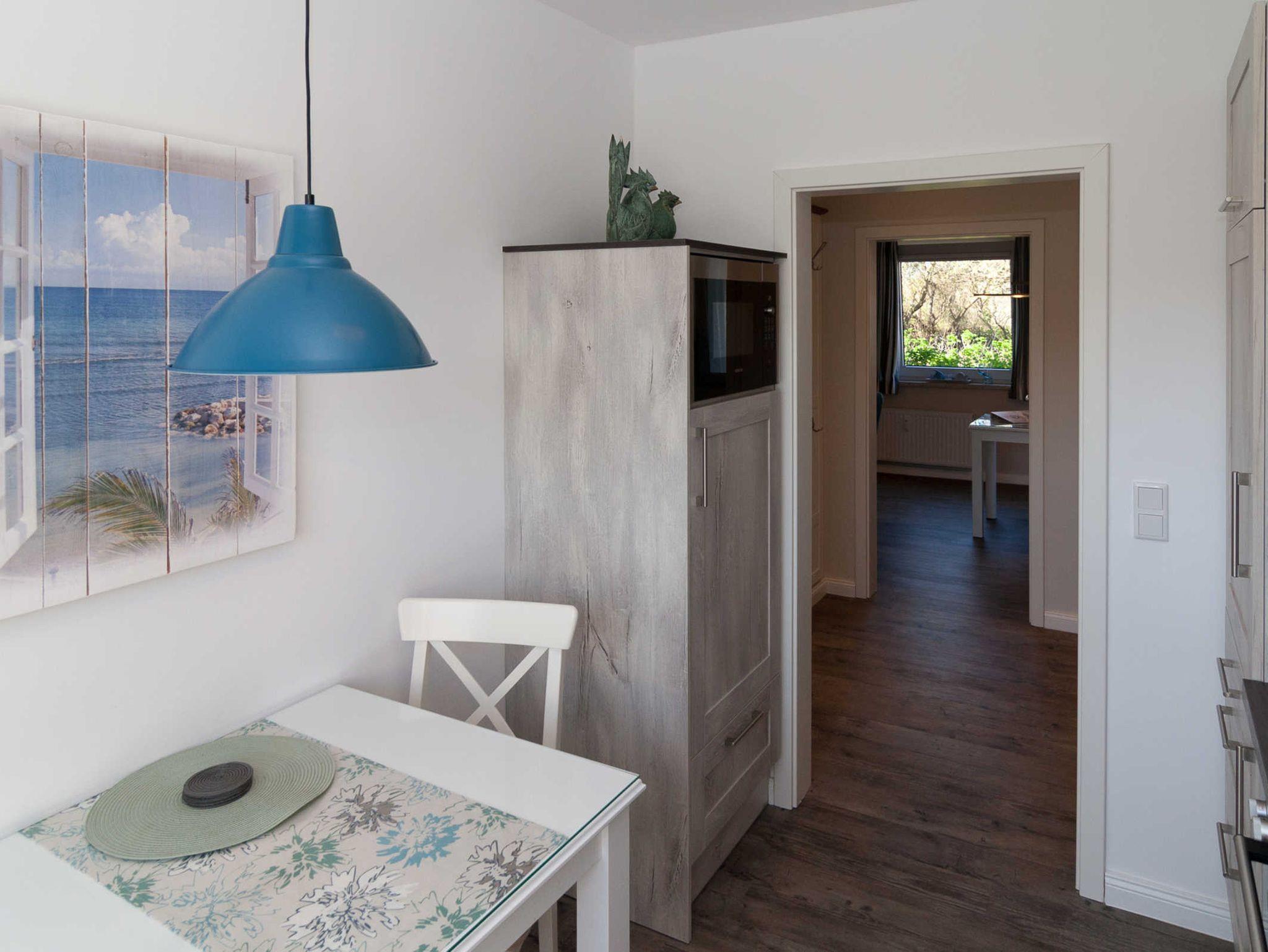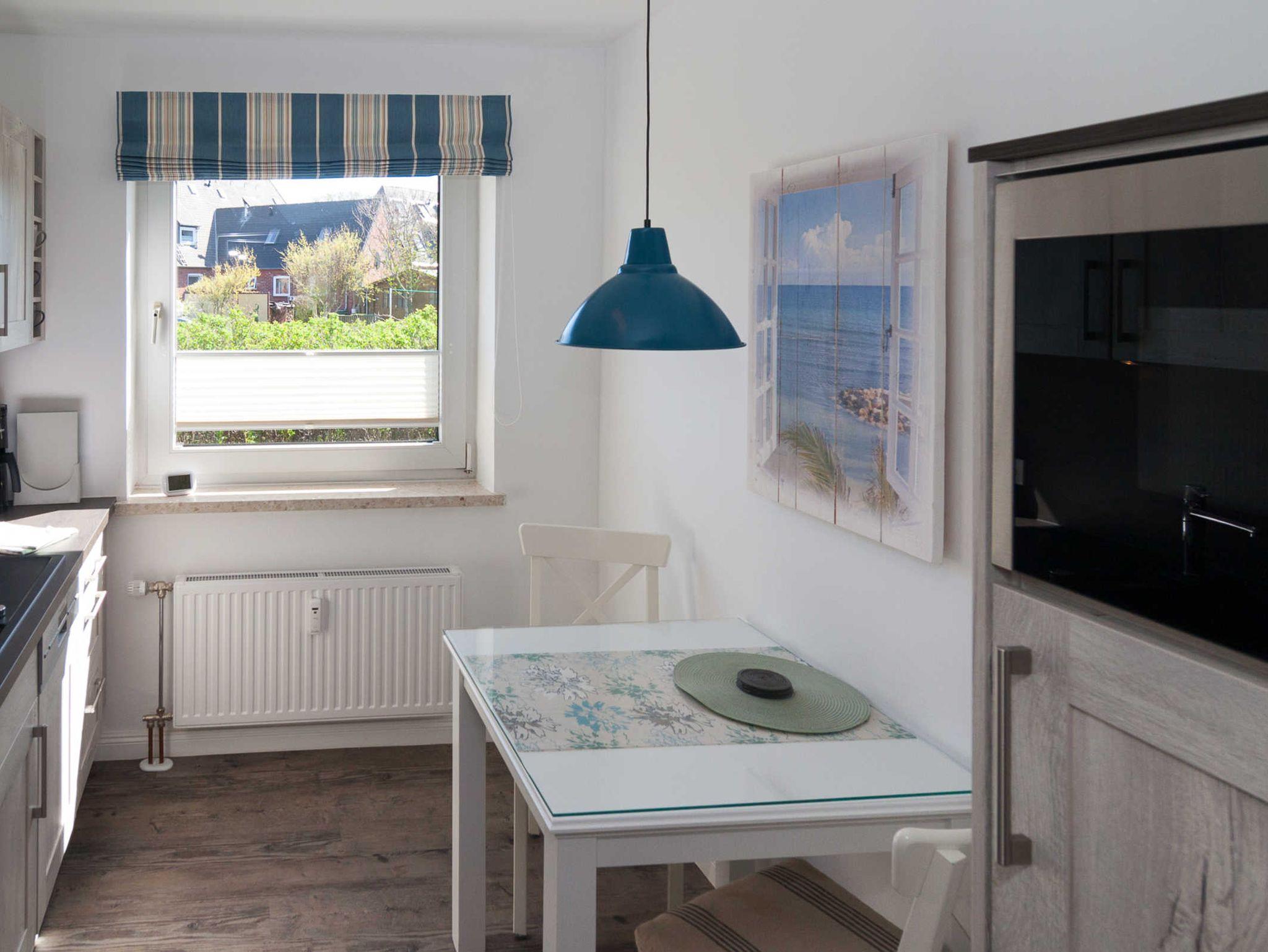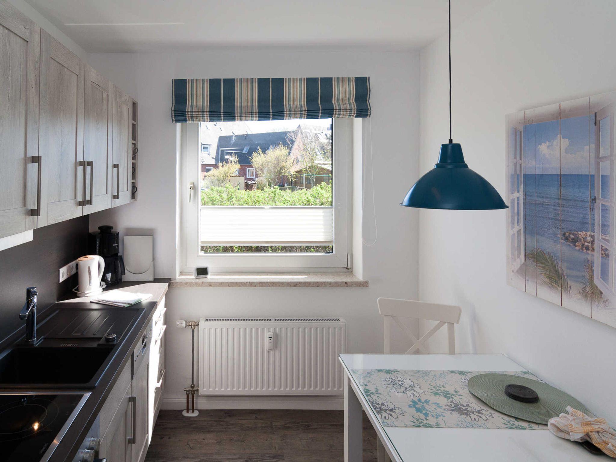 Die gemütliche, geschlossene Küche ist mit allem ausgestattet, was Sie brauchen: einem Cerankochfeld, Backofen, Spülmaschine und Mikrowelle. Hier können Sie leckere Mahlzeiten zubereiten und sich am Gartentisch auf dem Balkon erholen, während Sie den Blick ins Grüne genießen. Der Balkon ist der ideale Ort, um die frische Nordseeluft zu inhalieren oder ein gutes Buch zu lesen.