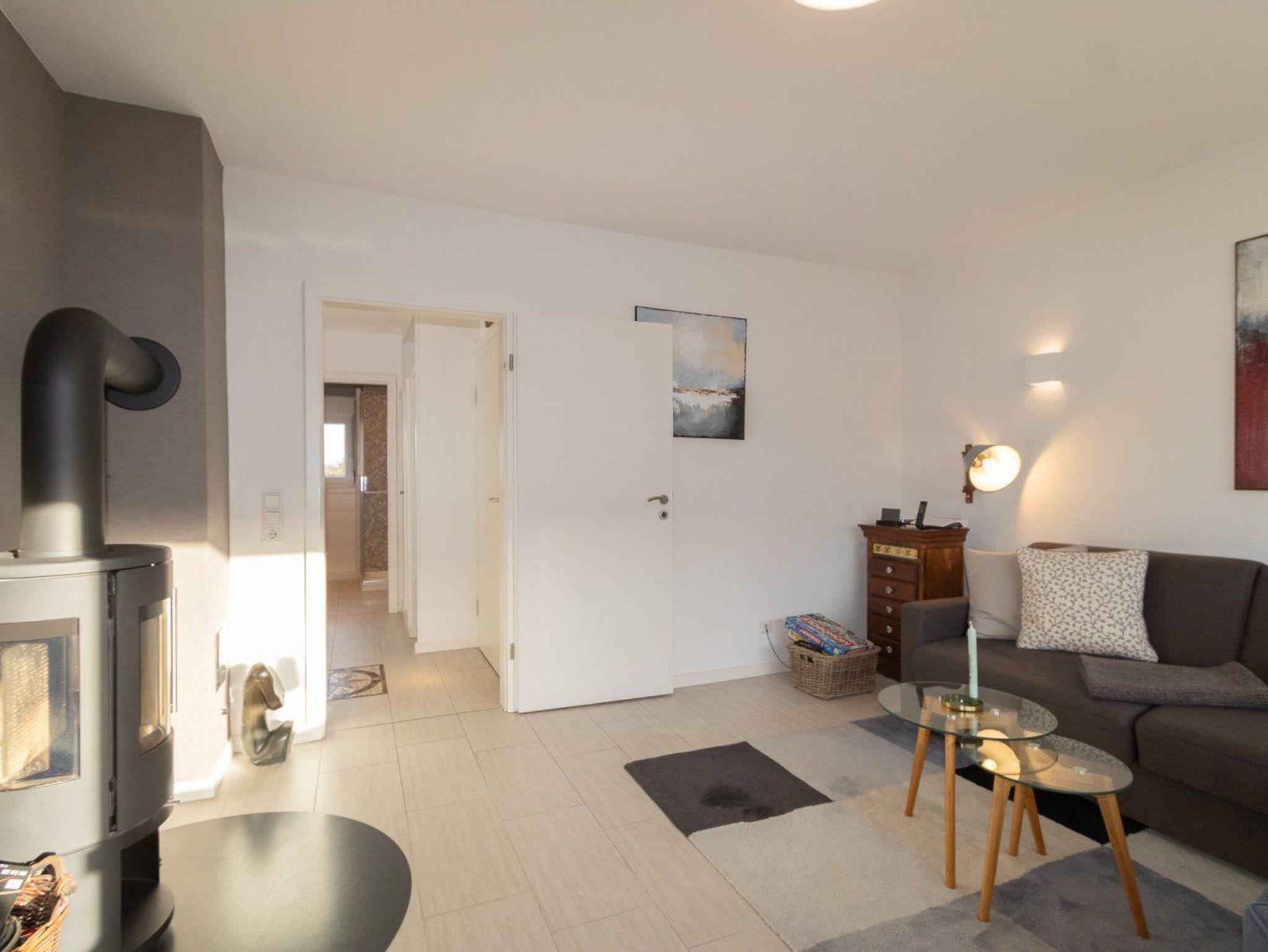 Gemütlich und mit viel Liebe zum Detail ist diese 2-Raum-Ferienwohnung eingerichtet. Sie verfügen über einen Wohnraum mit Balkon und Terrasse zum Süden, ein seperates Schlafzimmer, eine Küche mit Essbereich, die vollständig und komplett eingerichtet ist, und ein Duschbad. Für die 3. Person (bis 12 Jahre) steht im Wohnraum eine bequeme Schlafcouch zur Verfügung. Über den Balkon vom Wohnzimmer aus kommen Sie auf die mit Gartenmöbeln ausgestattete Terrasse, auf der Sie den ganzen Tag die Sonne geniessen können. Der Kaminofen ist neu und kann benutzt werden, wobei das Kaminholz sich selbst besorgt werden muss. Es handelt sich um eine Nichtraucher-Wohnung. Wer rauchen möchte kann gern den Balkon benutzen.