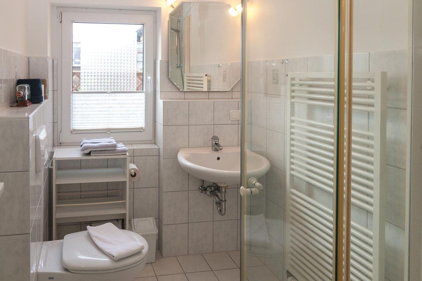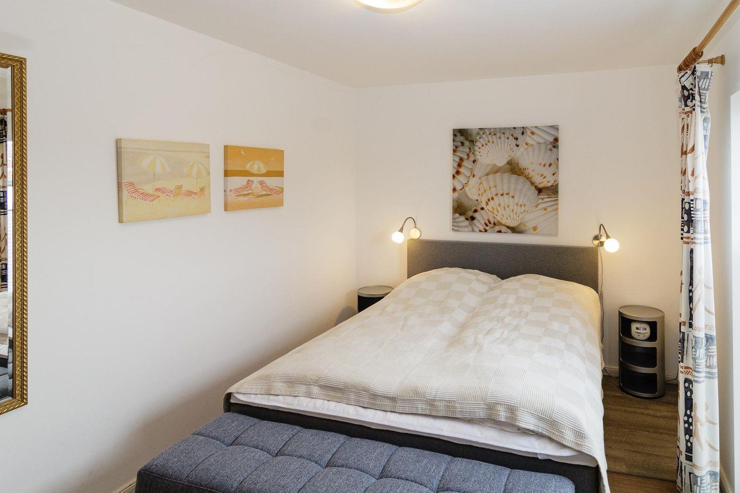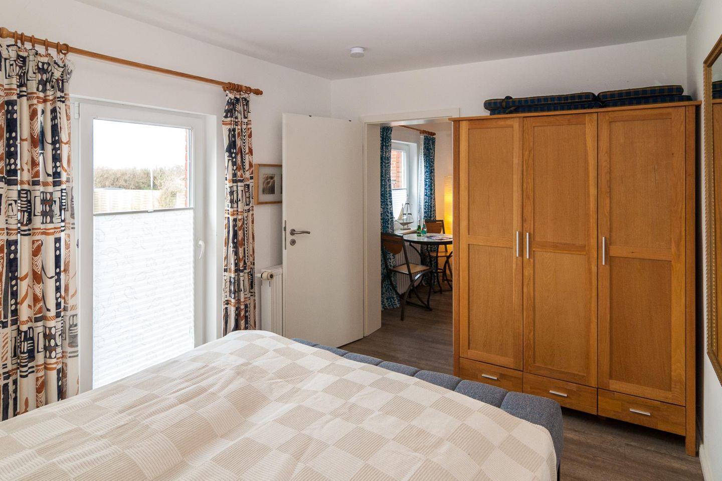 Gepflegtes, allergikerfreundliches 2 Zi.-Appartement im EG mit ca. 27 m², Wohnzimmer mit 2 Sitzer-Couch, 2 Beistellhocker, Tisch, Essplatz am Fenster für 2 Personen, Sat-TV, Radio mit CD-Player; Schlafzimmer mit neuem Boxspringbett und Zugang zur Westterrasse; Einbauküche mit 2 Plattenherd und Mikrowelle; Bad mit Dusche/WC; das App. ist komplett mit Designboden ausgelegt. Die Wohnung wird als Nichtraucherwohnung angeboten, wer rauchen möchte benutzt bitte die Terrasse. Tierhaltung ist erlaubt, muß jedoch vorher angemeldet sein.