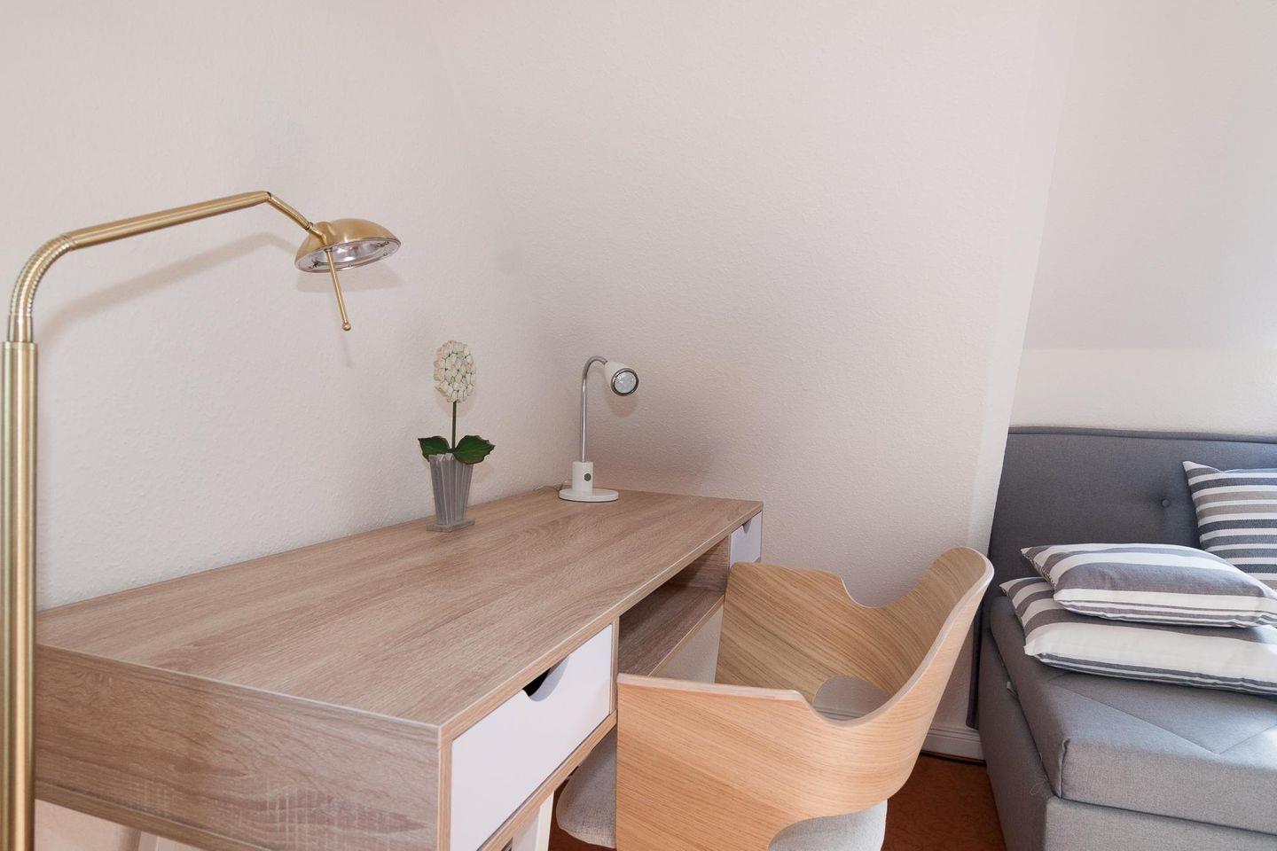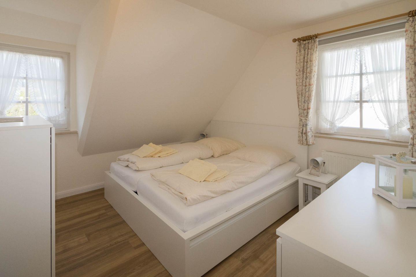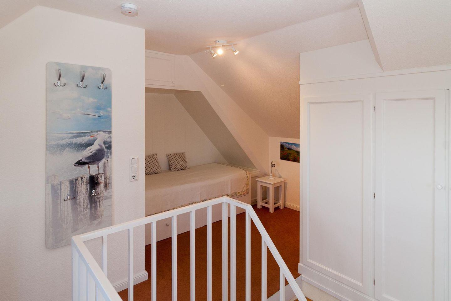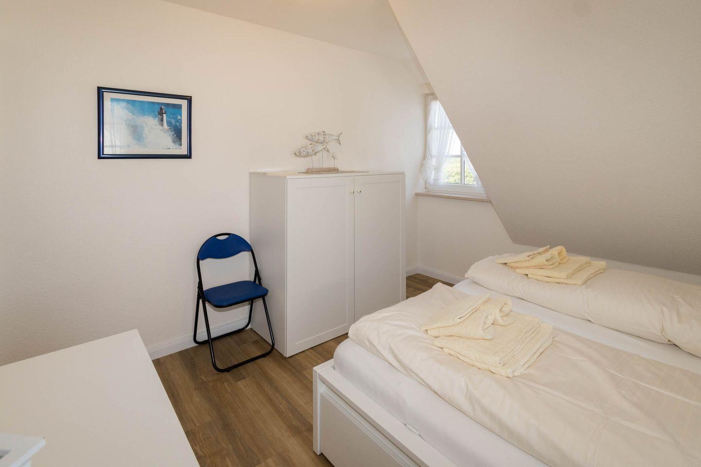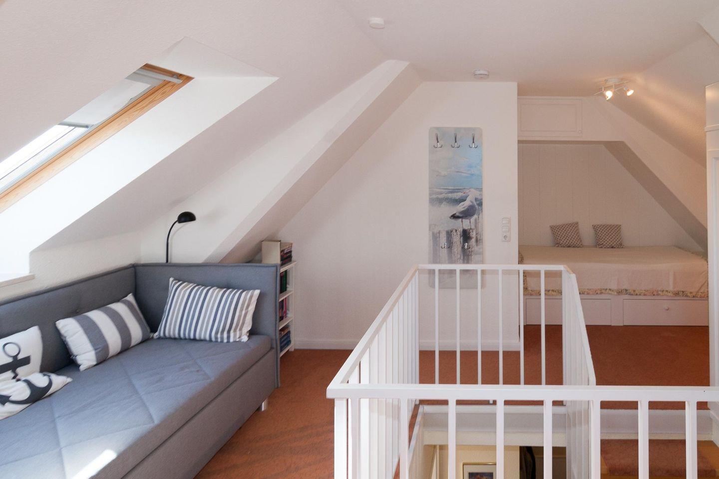Die Wohnung ist für 2 + 2 Personen (2 Erwachsene und 2 Kinder) ausgestattet. Sie befindet sich im 1. OG und ist wie folgt ausgestattet: 1 Schlafzimmer mit Doppelbett, modernes Duschbad, Wohnzimmer mit offener Küchenzeile und Balkon zum Süden. Auf dem Balkon können Sie den ganzen Tag die Sonne und den Panoramablick geniessen. Über eine Treppe im Flur können Sie die Galerie erreichen, in der sich die Betten für die 3. und 4. Person befinden.