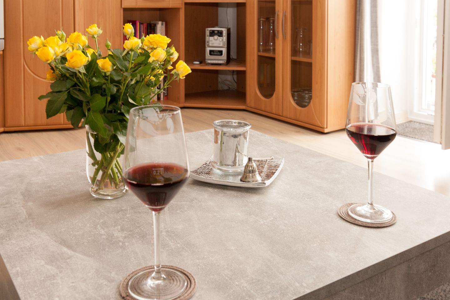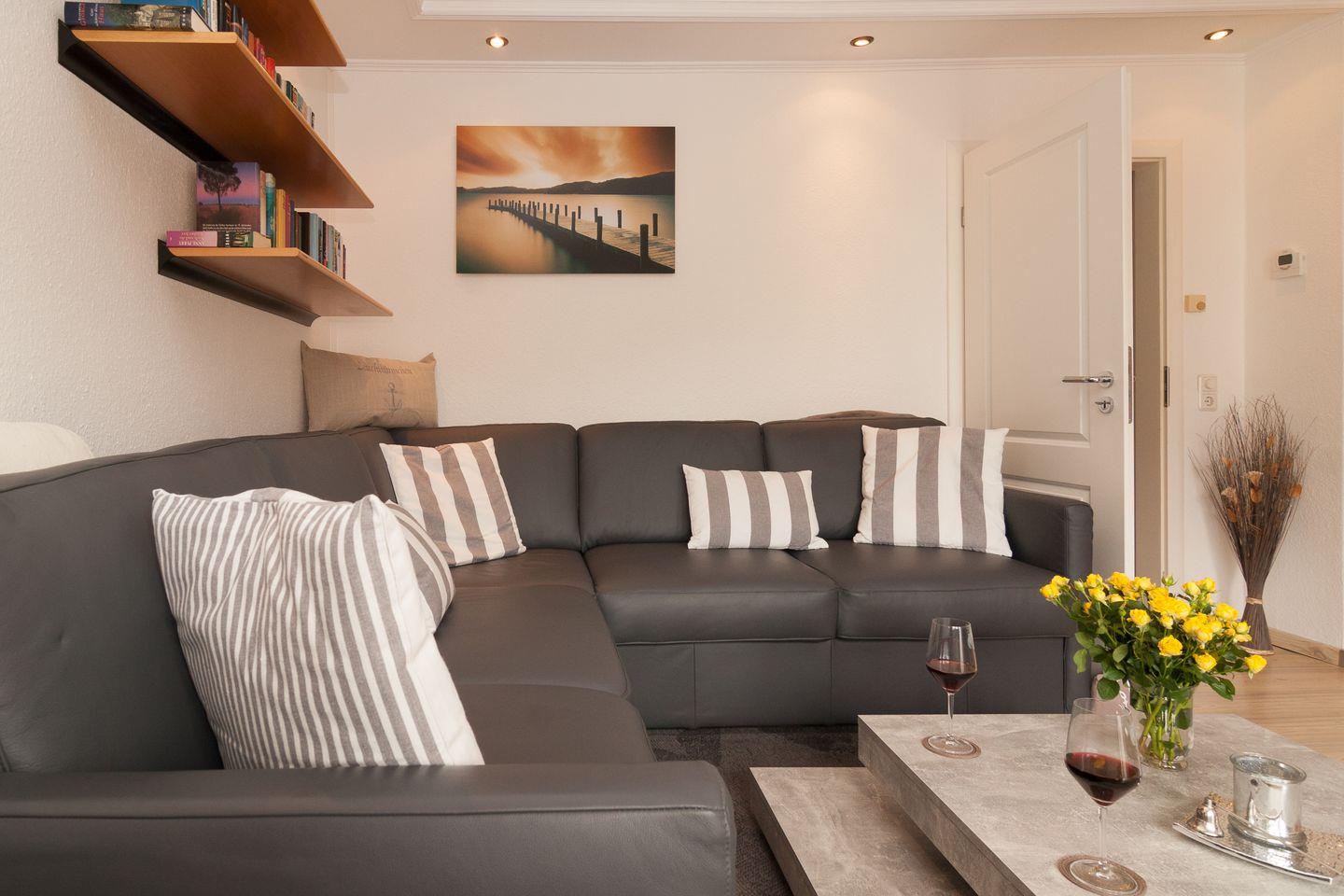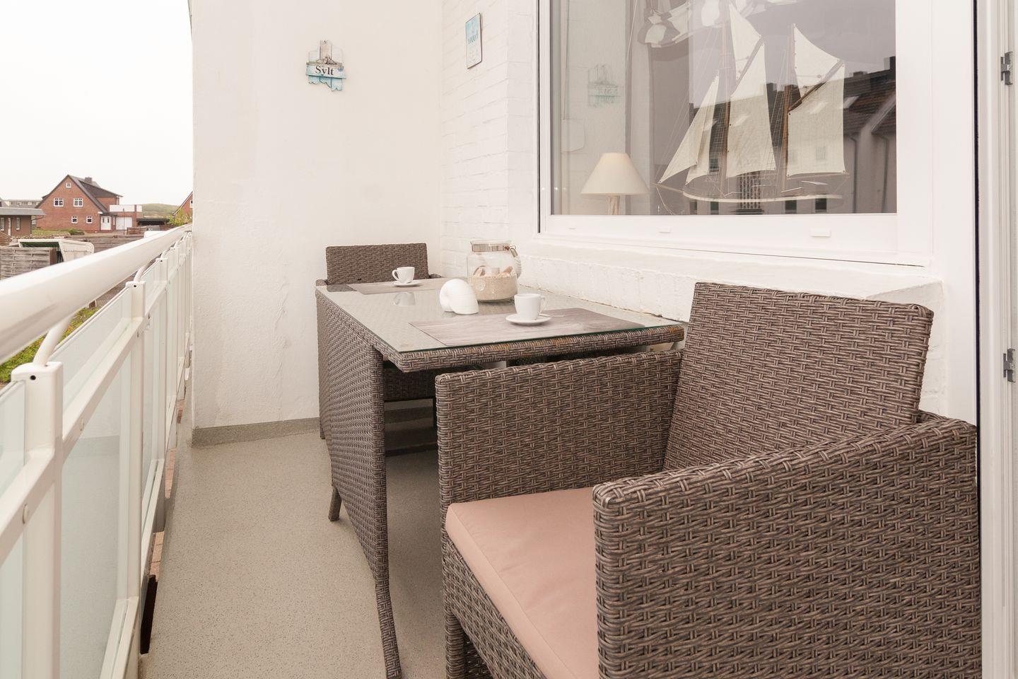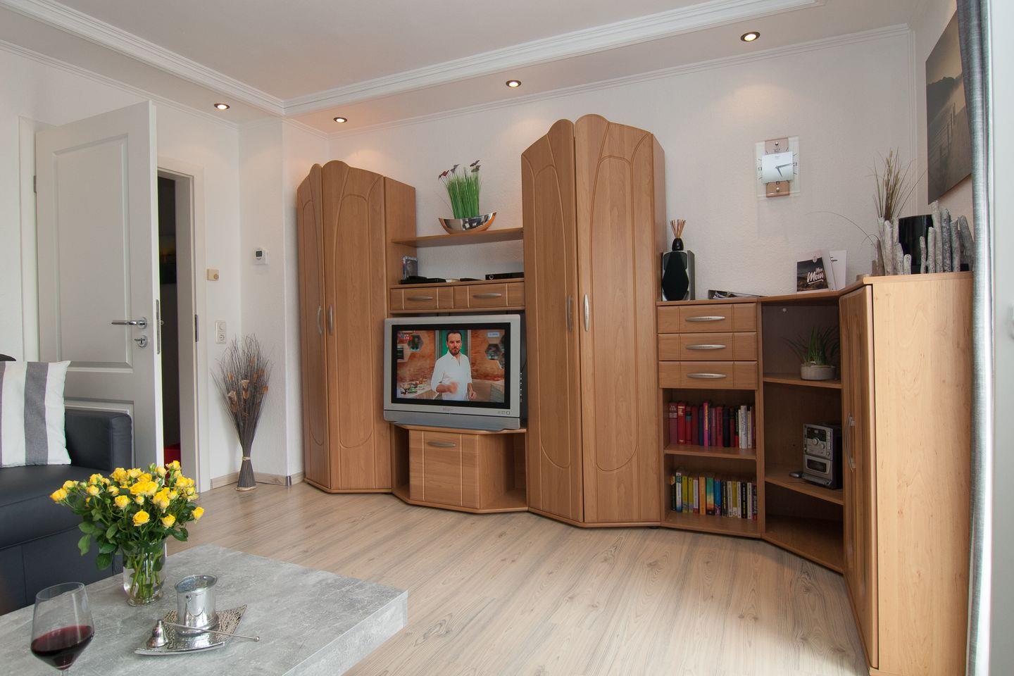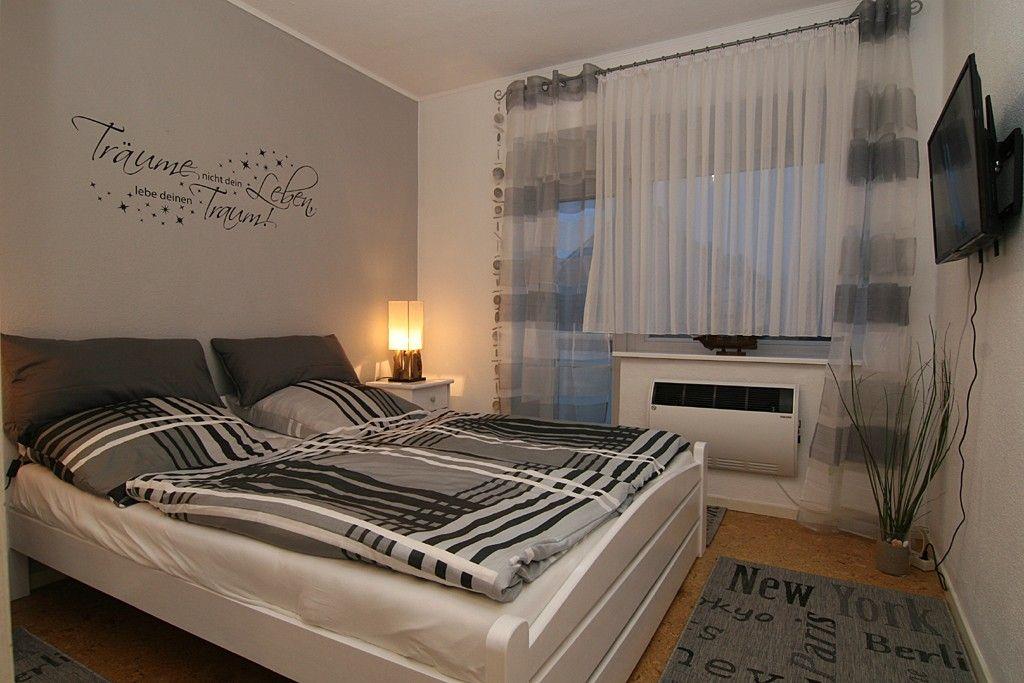 Die Wohnung liegt im Hochparterre und verfügt über ein Wohnzimmer, ein Schlafzimmer mit angrenzendem kleinem Ankleidezimmer, eine Küche mit Essecke und ein Wannenbad. Das Doppelbett im Schlafzimmer ist 1,60m X 2,00m groß und verfügt über zwei Matratzen. Alle Zimmer haben jeweils Außenjalousien vor den Fenstern. Vom Wohnzimmer aus gelangen Sie auf den Balkon mit Terrasse zum Süden. In der Wohnung können Sie kostenlos über WLAN im Internet surfen. Bitte beachten Sie, dass wir für eine einwandfreie Funktion des WLAN keine Gewährleistung übernehmen.