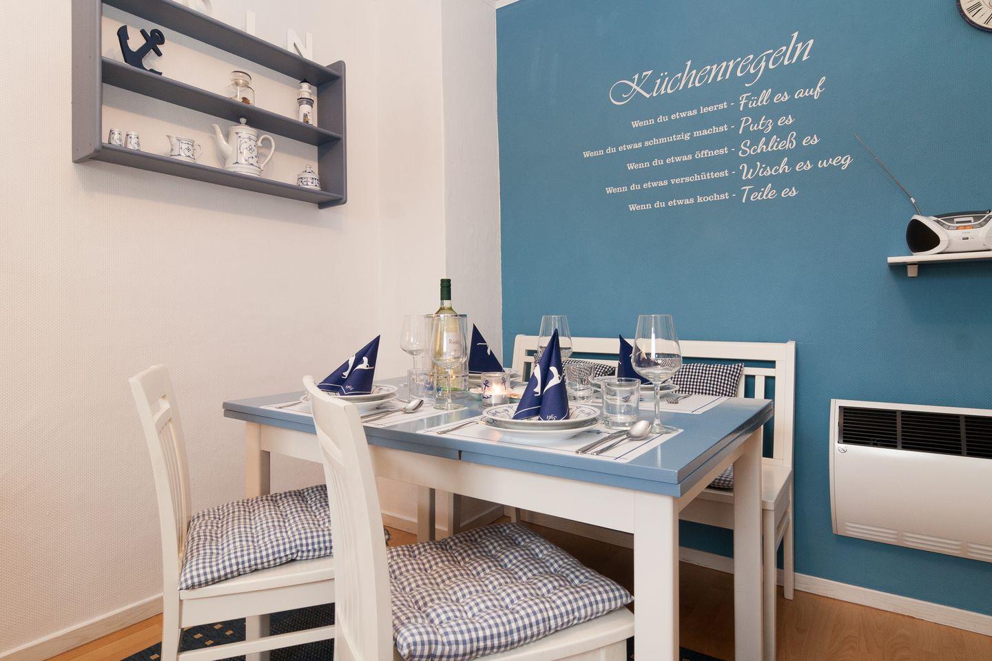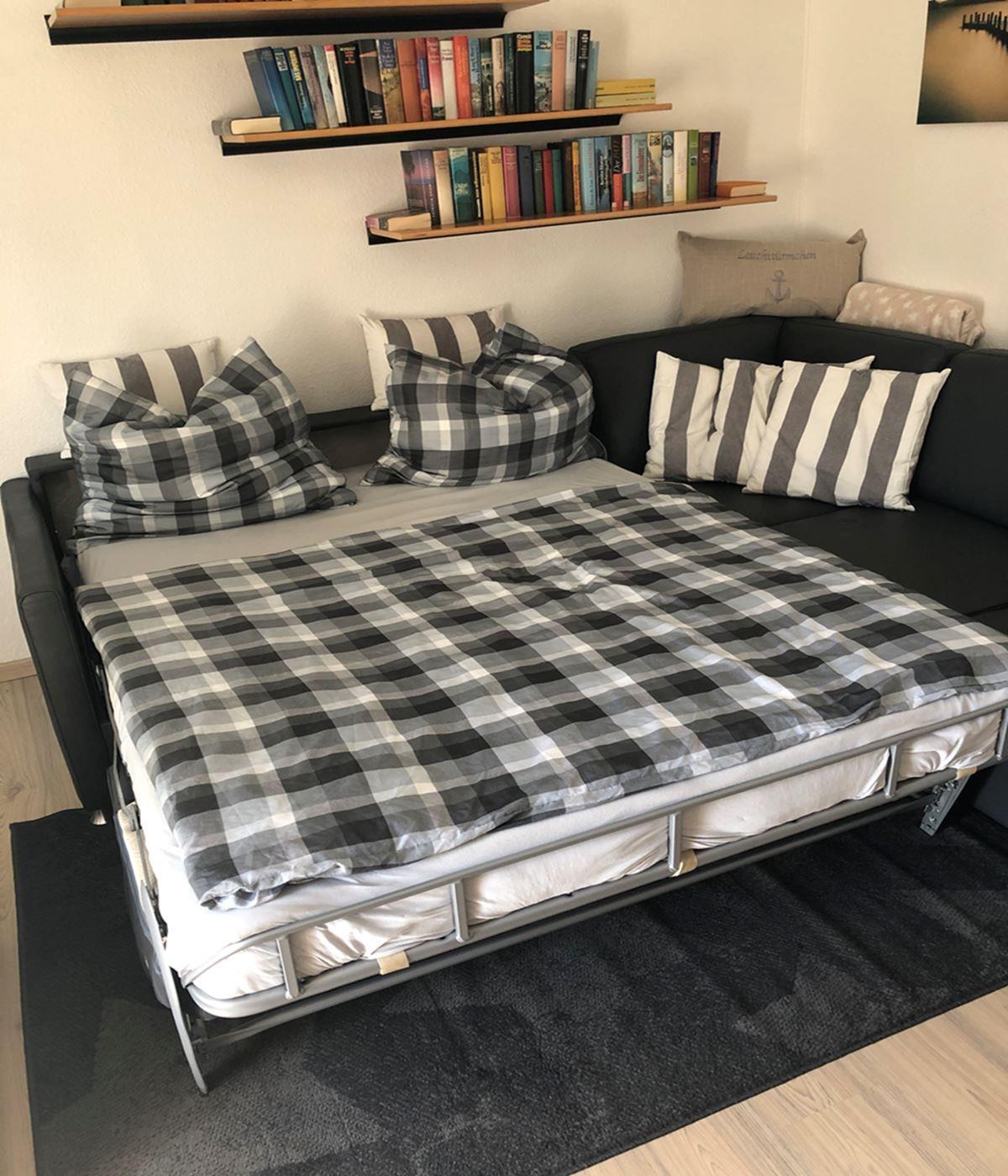 Die Wohnung liegt in einer ruhigen Seitenstraße. Sie besteht aus einer Küche mit Essecke, einem Schlafzimmer mit Doppelbett, Wohnzimmer mit Schlafcouch für die 3. und 4. Person, Balkon und Terrasse zur Südseite sowie einem Wannenbad.
