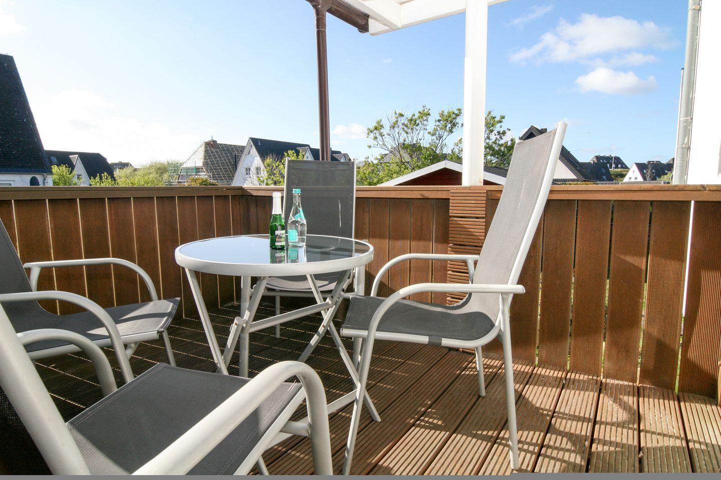 Direkt am Strand mit Blick auf das Meer und die Nachbarinseln Föhr und Amrum liegt diese lichtdurchflutete Ferienwohnung mit 2 Terrassen und Strandkorb. Entspannter Urlaub für bis zu 4 Personen (W-LAN Anschluss vorhanden).