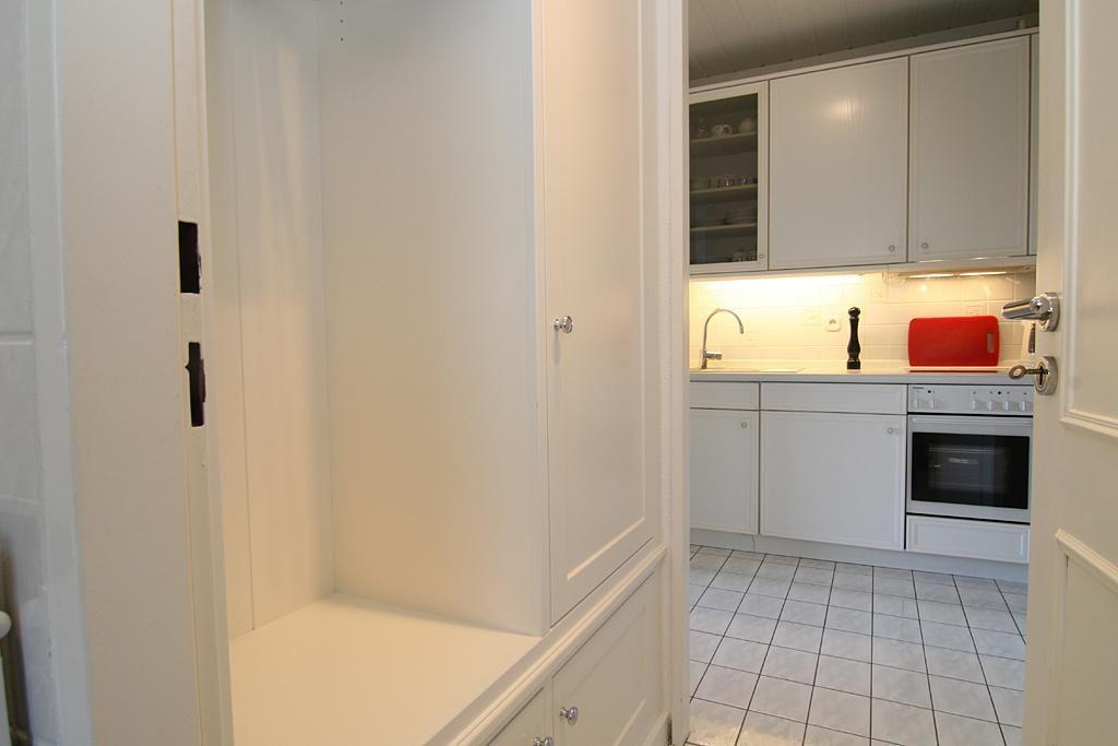Die Küchenzeile ist komplett ausgestattet und enthält neben Cerankochfeld und Backofen auch einen Geschirrspüler.