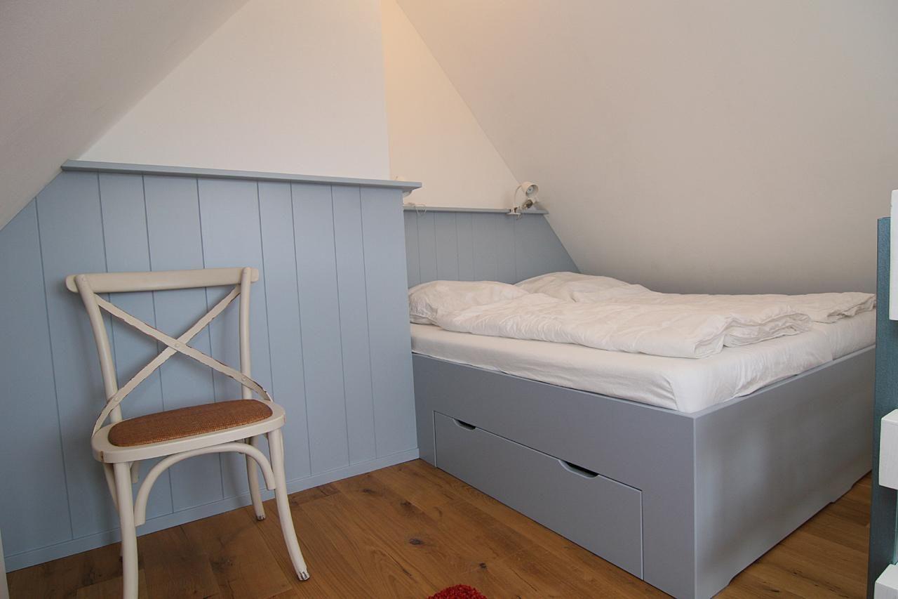 Über die Treppe gelangt man zum oberen Schlafbereich, der noch eine Leseecke mit traumhaftem Blick verfügt. Das Bett ist 180 x 200 cm groß und verfügt über zwei getrennte Matratzen.