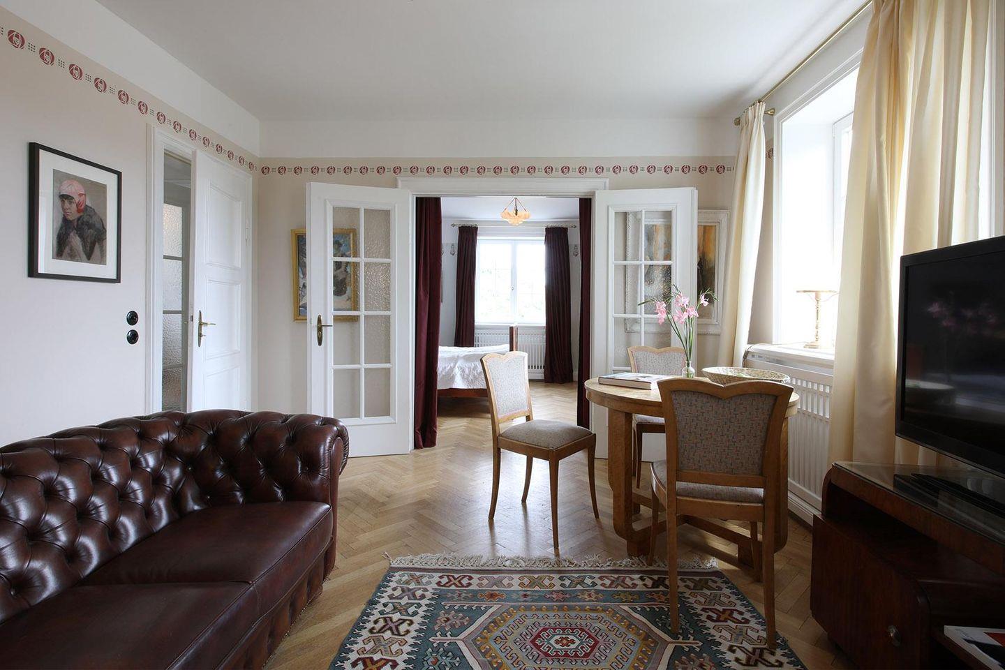 Moderne und Antiquitäten geben dieser Wohnung ein edles Ambiente. Sehr geschmackvoll wurden hier die Antiquitäten mit einer modernen Küchenzeile und einem großzügigen modernen Bad kombiniert. Eine großzügige Wohnung für 2 Personen.