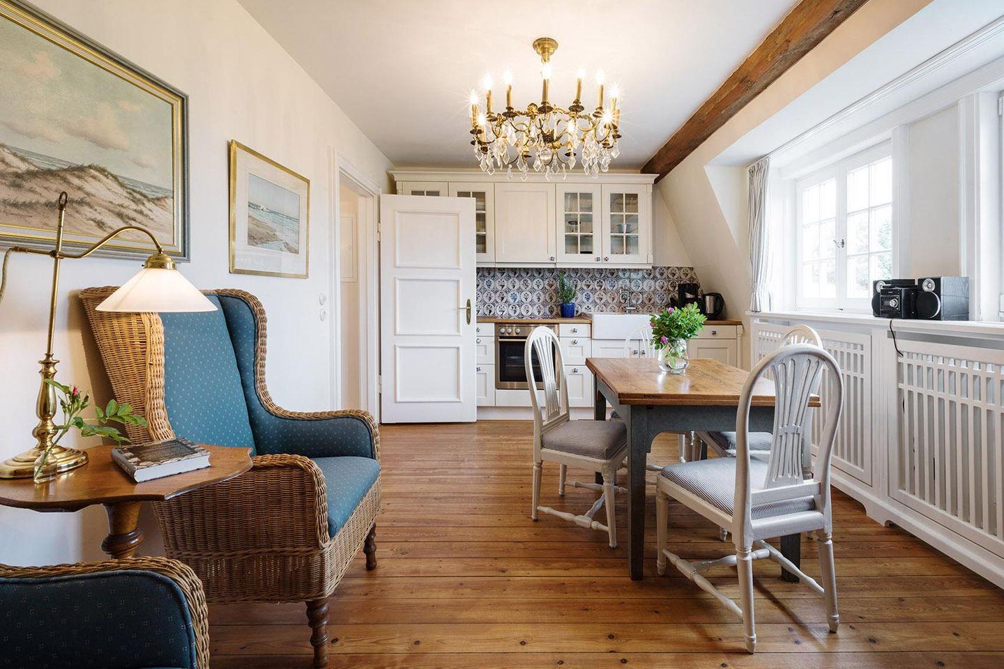 Mitten im Herzen von Hörnum verweilen Sie hier in einer Wohnung mit wunderschönem Ausblick bis zum Leuchtturm. Diese Wohnung ist komplett für 4 Personen (2 Erwachsene und 2 Kinder) ausgestattet. Alt und neu machen den Charme der Bel Etage aus.