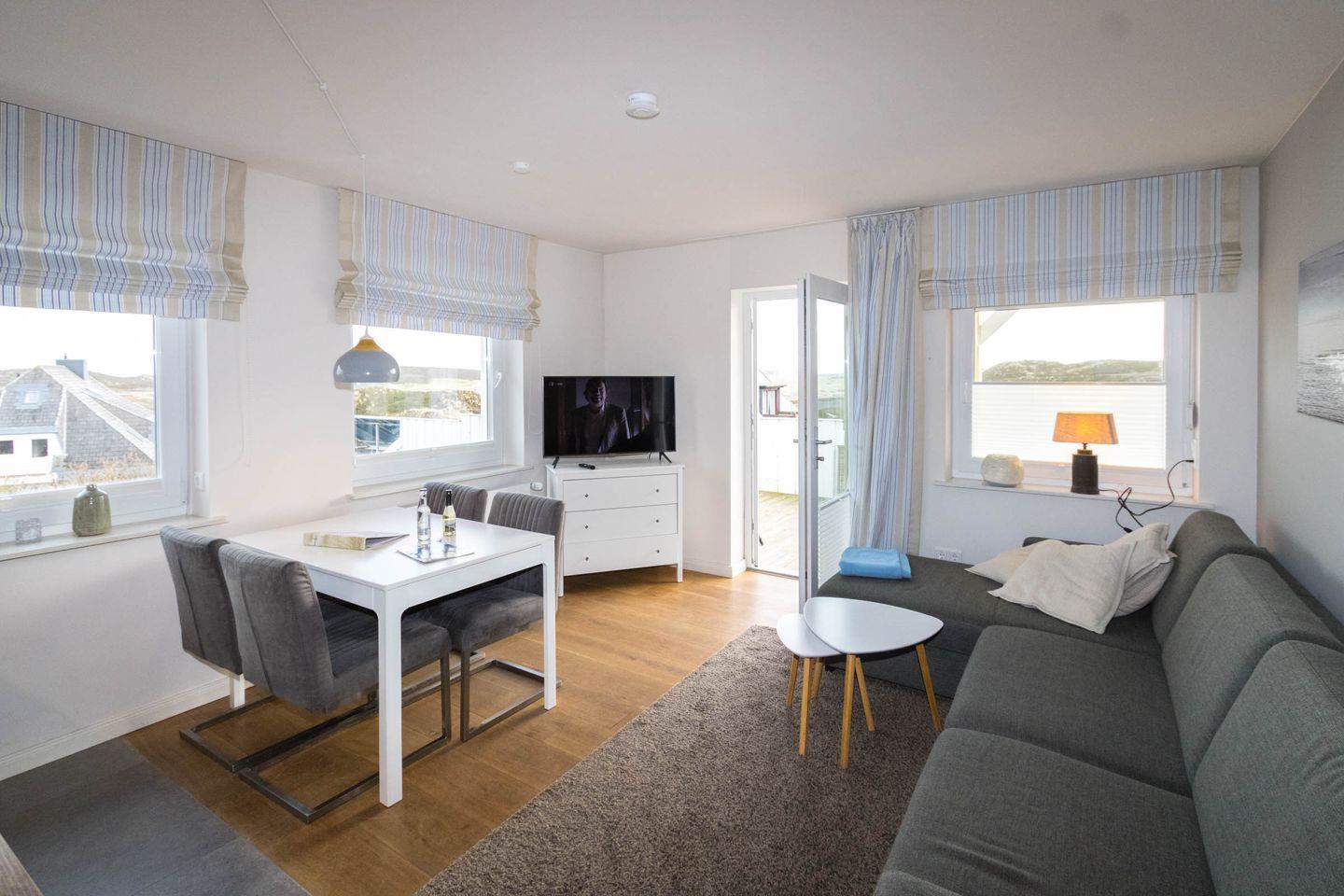 Die Wohnung Strandgut liegt im Haus Atair in Hörnum auf einer Düne mit traumhaftem Blick bis hin zu den Inseln Föhr und Amrum. Sie bietet auf 40 m² eine hochwertige Ausstattung mit Geschmack zum Detail und wurde gerade komplett neu renoviert.