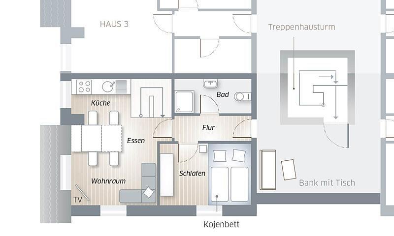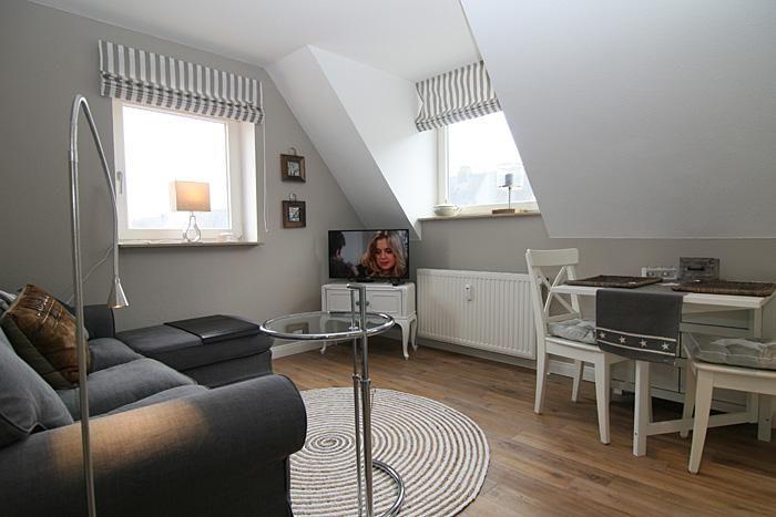 Unsere "Strandperle" ist eine mit viel Liebe eingerichtete kleine 2 Zimmer DG - Wohnung, die in 2021 renoviert wurde. Hier fühlen sich am liebsten 2 Personen wohl. Es sind zwei Schlafmöglichkeiten vorhanden. Vom Flurbereich gelangen Sie in das kuschlige Kojenzimmer. In dem im Sylter-Style eingebauten Kojenbett (140x200 cm) können Sie bequem schlafen oder einfach nur mit Blick auf den Leuchtturm entspannen. Gegenüber ist das helle, moderne Duschbad. Vom kleinen Flur mit Garderobe gelangt man in den Wohn-/Ess-/Schlafbereich (160x200 cm) mit Holztreppe und Empore. In diesem befindet sich das gemütliche Sofa - ebenfalls mit Leuchtturmblick. Der Wohnbereich bietet freies WLAN, Smart - TV und ein Radio (DAB Plus und Bluetooth) Der Esstisch für Zwei ist ist leicht auf vier Personen erweiterbar. Eine geschmackvolle, kleine Einbauküche bietet alles, was Sie für Ihren Urlaub benötigen: Induktionskochfeld mit vier Kochstellen, Backofen, Kühl-Gefrierkombination, Mikrowelle, Senseo-Kaffeemaschine, Toaster und Geschirrspülmaschine. Rundum eine Top-Urlaubsadresse und Ausgangspunkt für einen unvergesslichen Urlaub. Übrigens für Ihr Auto gibt’s natürlich einen kostenfreien Stellplatz, aber auch mit dem Bus ist die Wohnung hervorragend erreichbar.