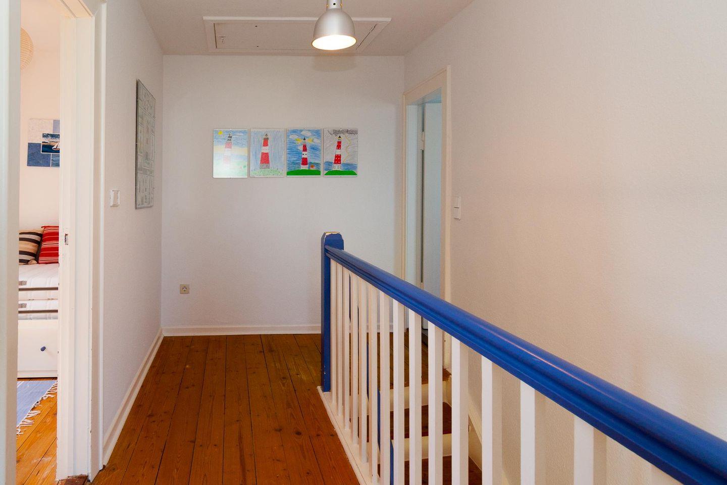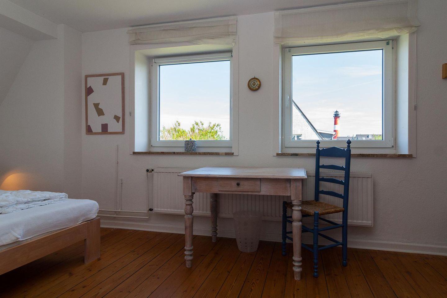 Die Räume sind hell und freundlich eingerichtet. Drei Schlafzimmer bieten Familien bis zu acht Personen ausreichend Platz. Das Badezimmer im Obergeschoss wurde gerade komplett erneuert. Stilvolle Doppelhaushälfte (ca. 90 qm) mitten in Hörnum und doch ruhig gelegen, oben auf dem Kamm einer Düne (Zugang über eine Treppe), mit Blick auf Leuchtturm und Meer. Besuchen Sie uns im wunderschönen Hörnum - Gerne erwarten wir Ihre Anfrage