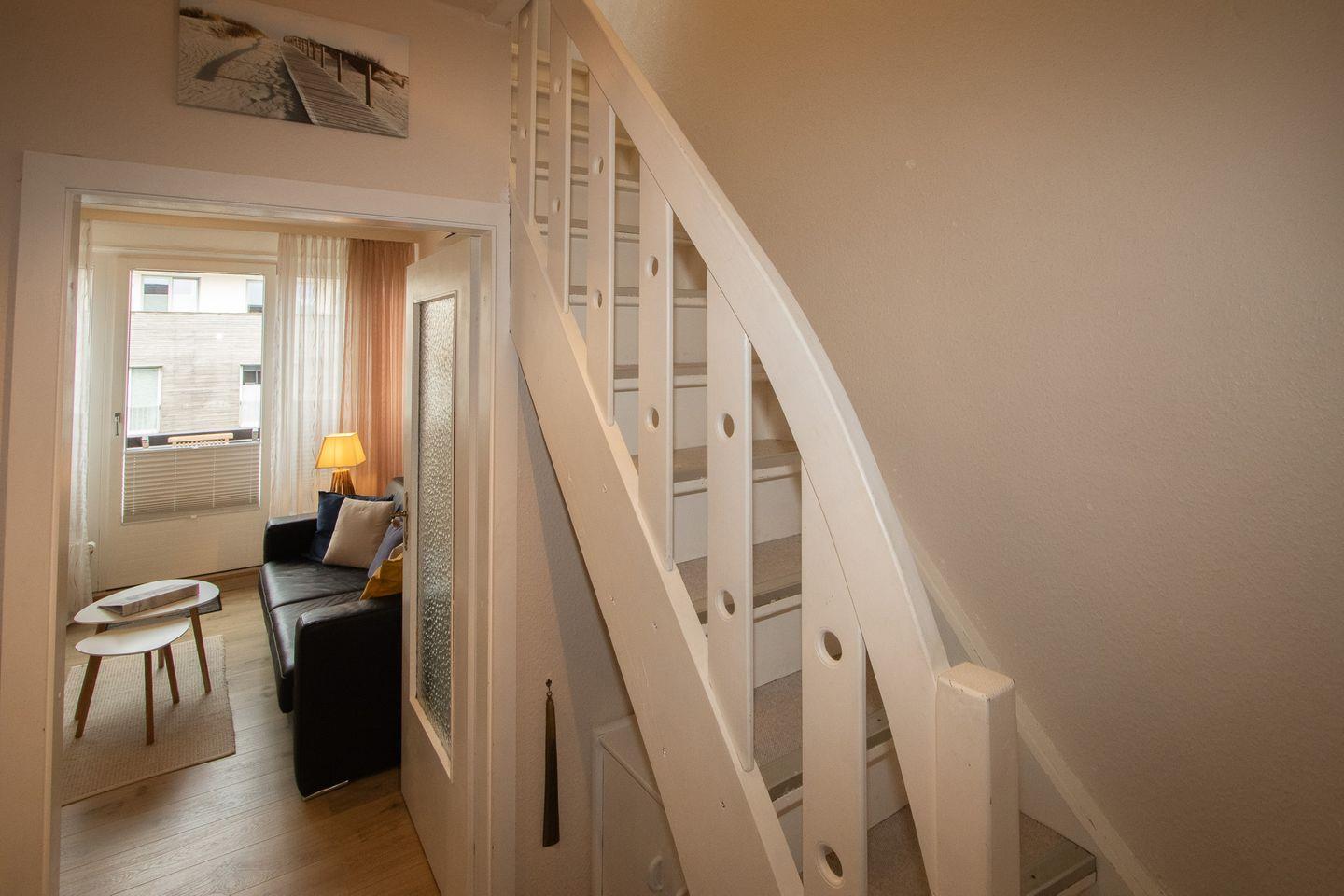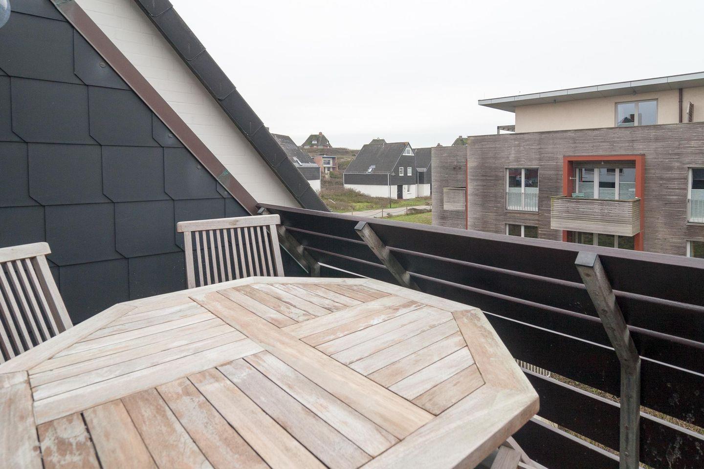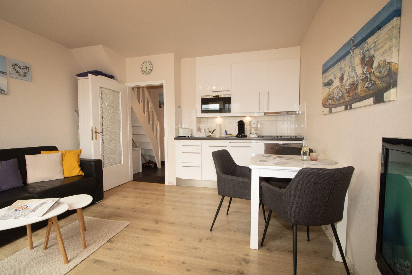 Die kleine Wohnung hat eine Wohn- und Nutzfläche mit Balkon von ca. 40 qm. Aufgeteilt ist die Wohnung in einem Schlafzimmer im oberen Bereich. Die Küchenzeile ist mit einer Mikrowelle und Geschirrspüler ausgestattet. Ein separates Duschbad gehört ebenfalls zur Ausstattung. Der PKW-Stellplatz liegt direkt am Haus. Die Wohnung liegt in sehr ruhiger Lage und unmittelbarer Lage am Weststrand. Gerne erwarten wir Ihre Anfrage.