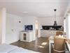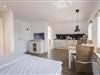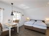 Die Wohnung befindet sich im ersten Stock und besticht durch eine offene Küche, die nahtlos in den gemütlichen Wohnbereich übergeht. Hier können Sie Ihre Lieblingsgerichte in der vollausgestatteten Küche zubereiten, die mit modernen Geräten wie einem Cerankochfeld, einem Kühlschrank mit Gefrierfach, einer Kaffeemaschine, einem Wasserkocher sowie Küchenutensilien ausgestattet ist. Genießen Sie Ihre Mahlzeiten am Esstisch, während Sie den Satelliten-TV einschalten oder das Radio für entspannte Hintergrundmusik nutzen.